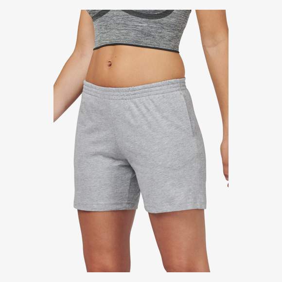 The short jersey sport femme is made of pre-shrunk ring-spun cotton, oxford grey contains 90% cotton and 10% viscose. It features two side pockets and a patch pocket at the back, as well as an elastic waistband for fit. The finish is done with double stitching at the hems.