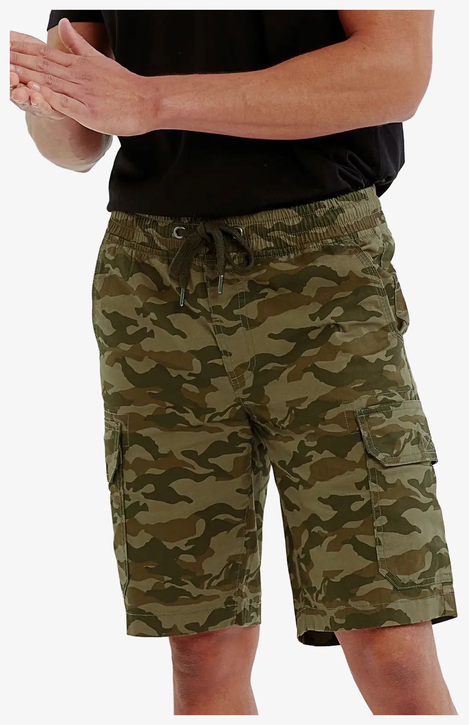 The short cargo homme camouflage is made of soft and durable cotton. It features an elastic waistband with drawcords and multiple pockets enhancing its functionality.