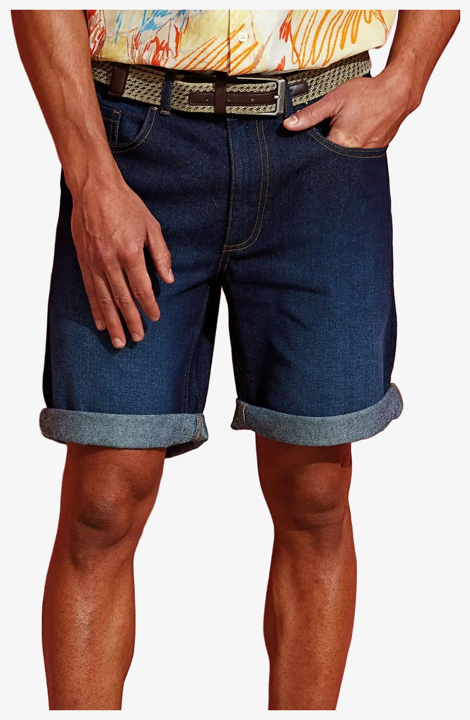 The short jean homme wb908 has a wide cut at the thighs allowing for rolled wear. It is faded and shows contrast seams and brass decorations. Two front pockets with coin pocket included, plus two patch back pockets. Closure by zip and button. Belt loops complete the model.