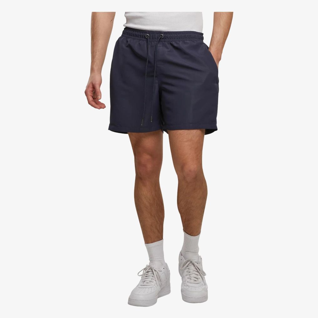 The basic swimshorts is made of recycled polyester. It features an elastic waist with drawstring for fit. It includes one zipped back pocket and two side pockets.