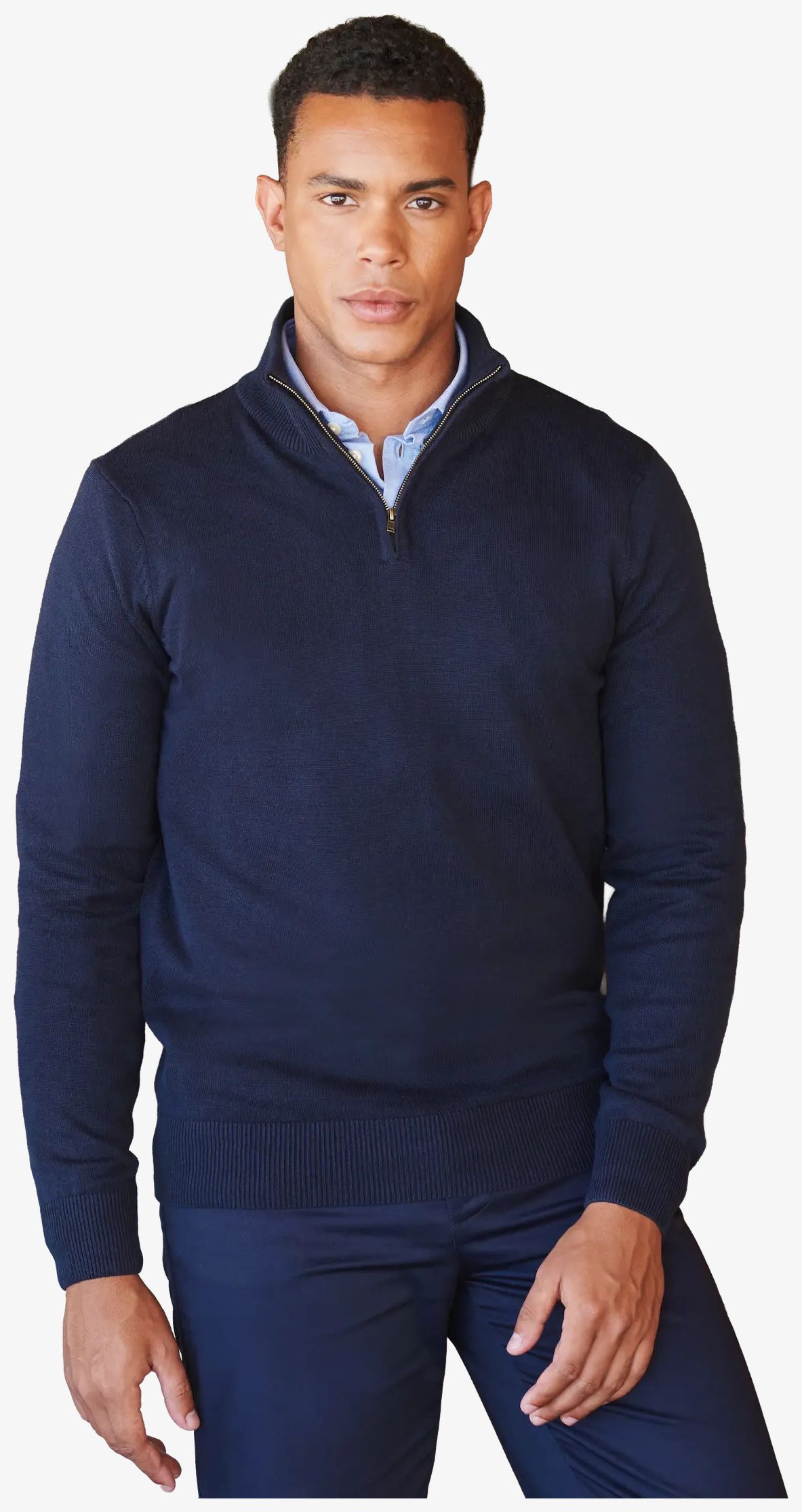 The zip collar sweatshirt for men is designed with a zip collar and 1 x 1 ribbed edges at the collar, cuffs, and hem. The combination of cotton and acrylic provides a structure suitable for daily use.