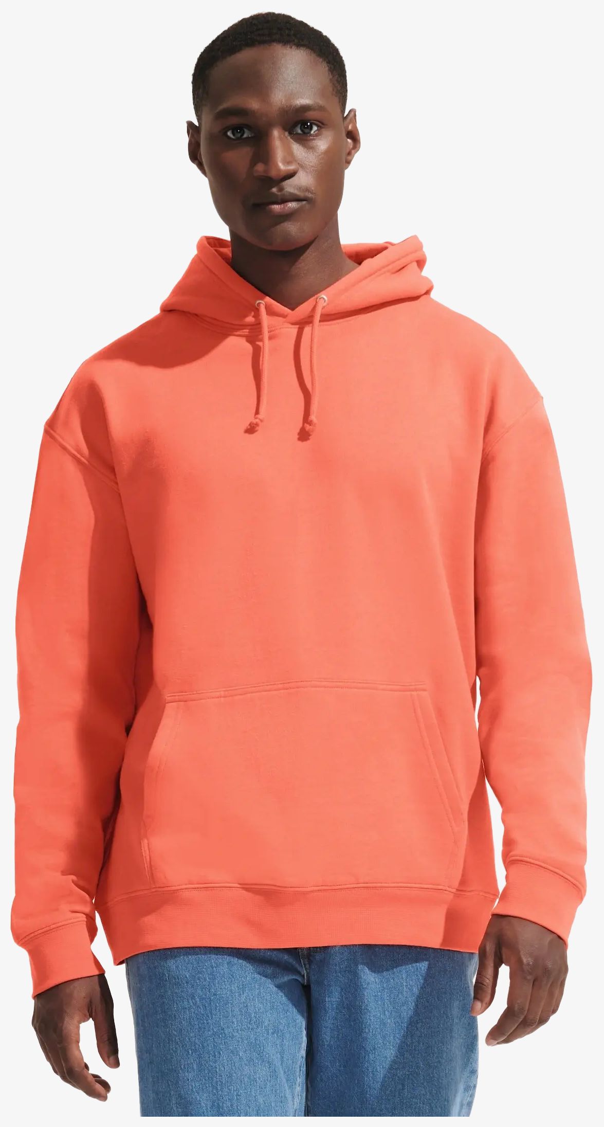 The unisex hoodie Condor features set-in sleeves and 1x1 ribbing at bottom cuffs. It has a kangaroo pocket and a lined hood with tone-on-tone drawstring and metal eyelets. The half-moon neck tape is jersey.