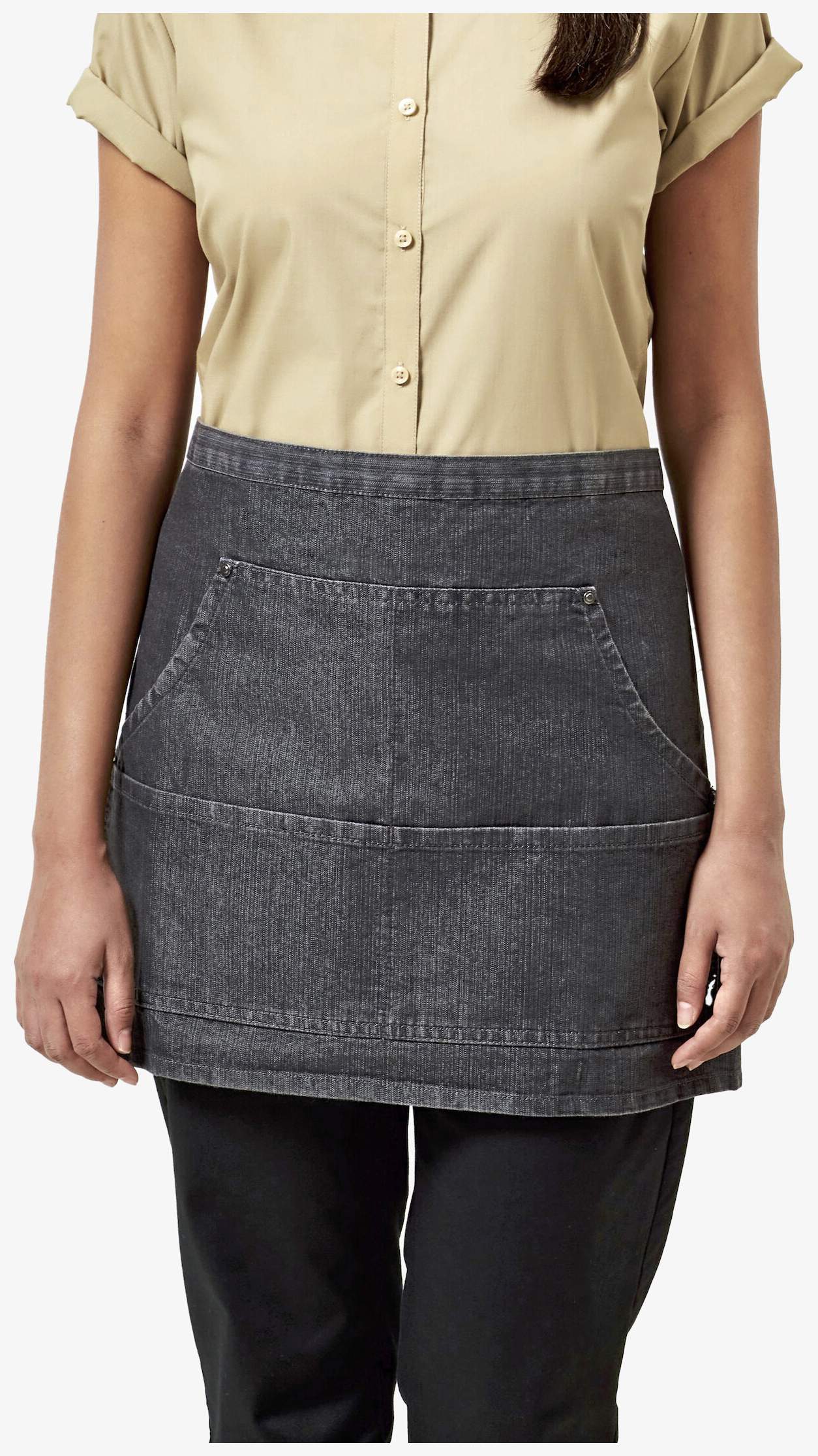 The tablier taille denim combines a fabric made of 70% cotton and 30% polyester. It has four pockets separated by contrast stitching. The fabric straps measure 106 cm and can be tied in front for a crossed back effect.