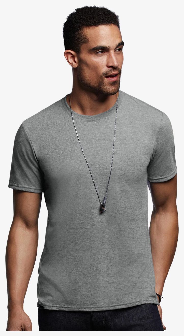 Tee-shirt unisexe à col rond. Bande de propreté au col. Col avec bord côte élasthanne. Manches courtes. Tubulaire. Composition : 100% coton semi-peigné Ringspun, sauf couleurs: Blanc chiné (98 % coton, 2 % viscose), Gris chiné (85 % coton, 15 % viscose).