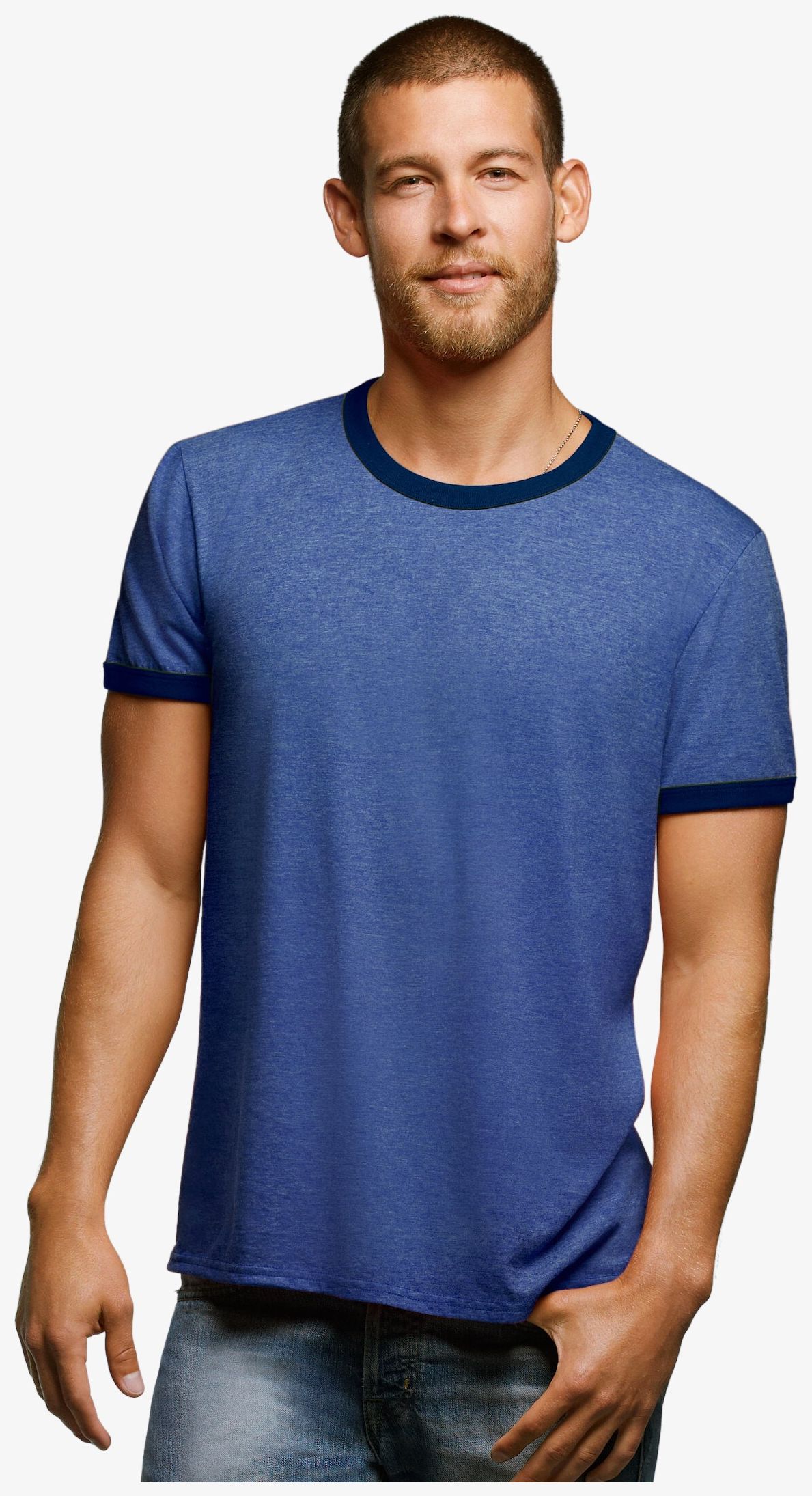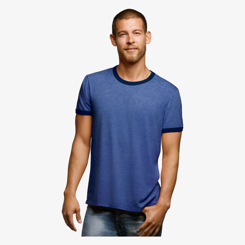 Tee-shirt unisexe à col rond. Bande de propreté au col. Col avec bord côte élasthanne. Manches courtes. Tubulaire. Composition : 100% coton semi-peigné Ringspun, sauf couleurs: Blanc chiné (98 % coton, 2 % viscose), Gris chiné (85 % coton, 15 % viscose).