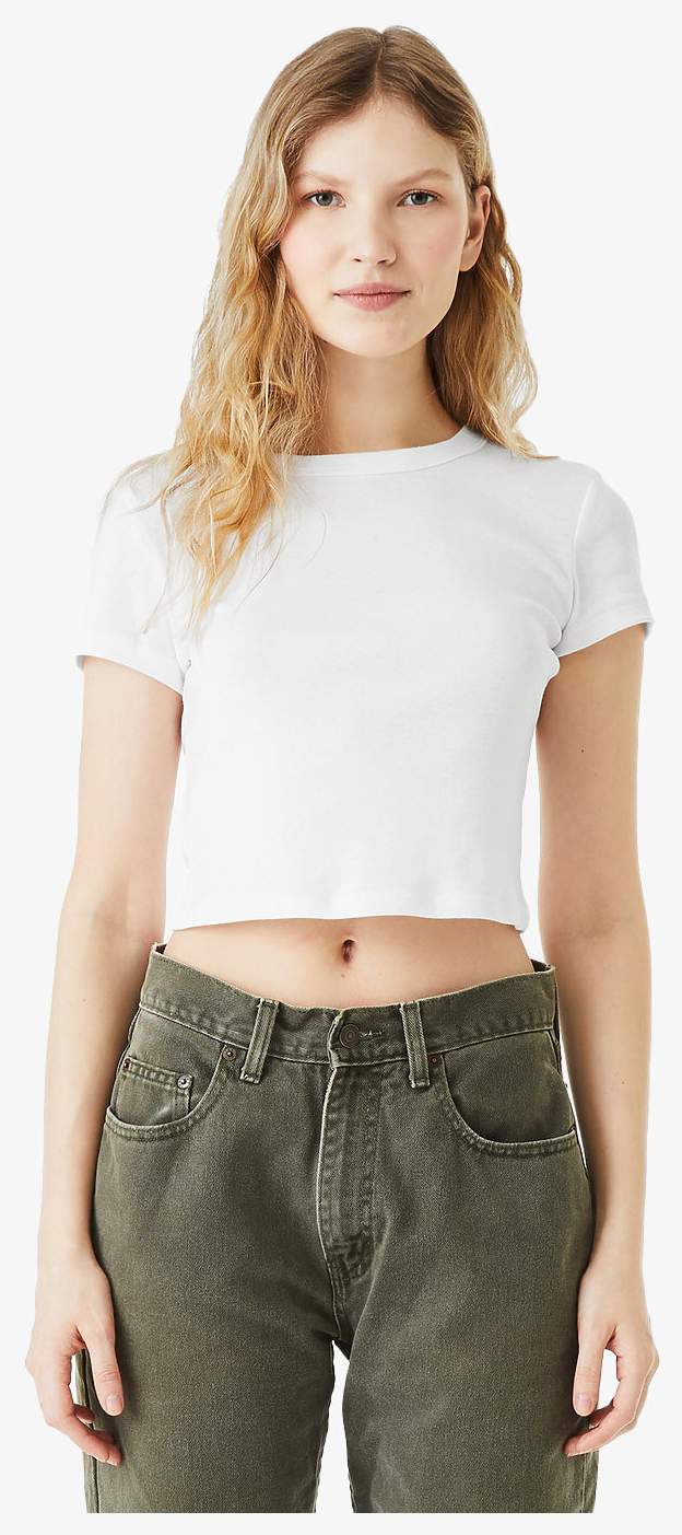 The Women's micro rib baby tee is a combed cotton tee-shirt with 1x1 ribbing and fitted stretch cut. It is pre-shrunk and has side seams for better fit.