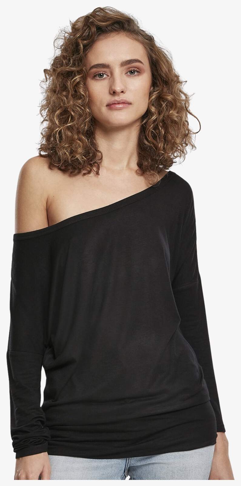 The long sleeve tee-shirt Ladies Viscose Longsleeve is made of single jersey with a neutral unbranded label. It features a very long cut with long sleeves.