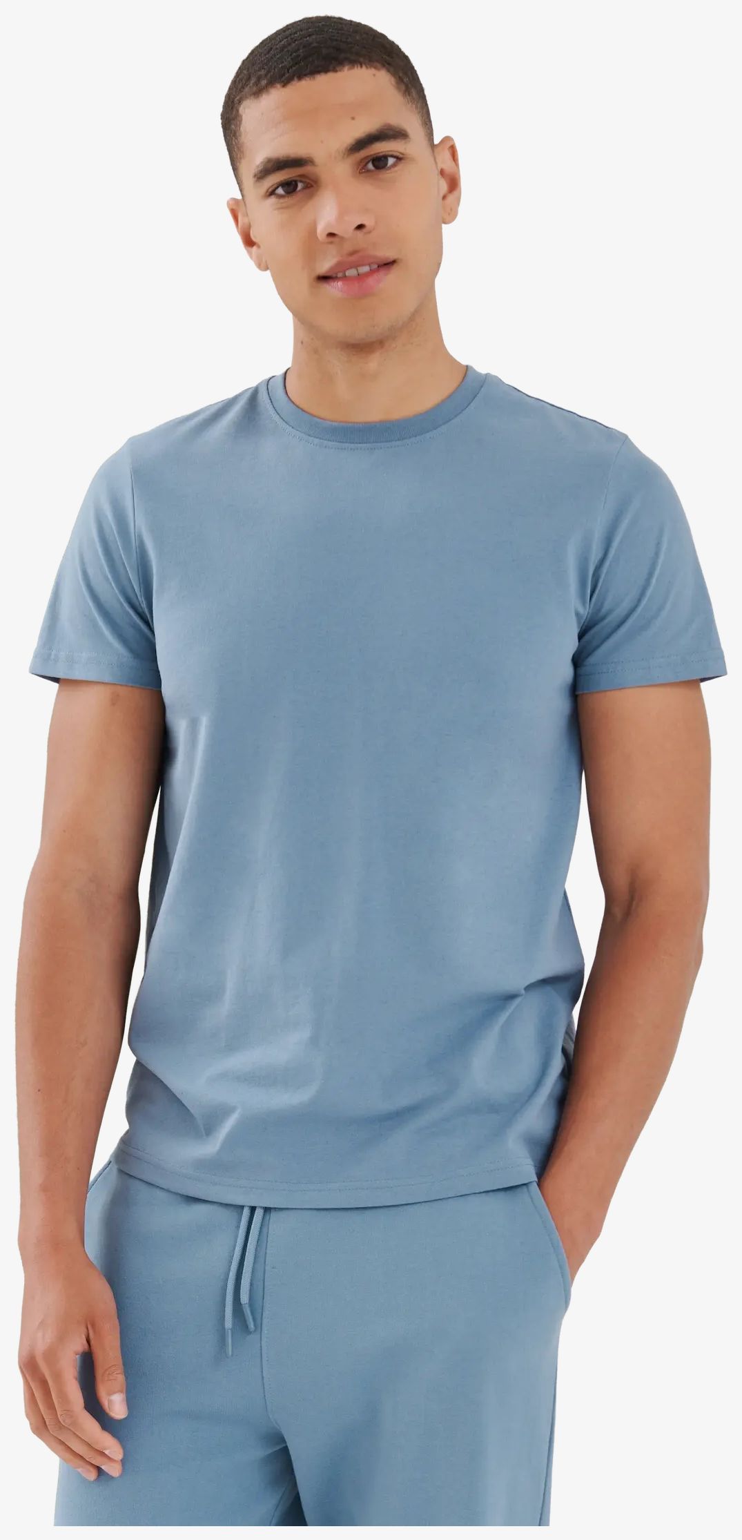 The unisex tee-shirt combines regenerated cotton and recycled polyester. It features a relaxed fit, straight sleeves and dropped shoulders with a ribbed collar.
