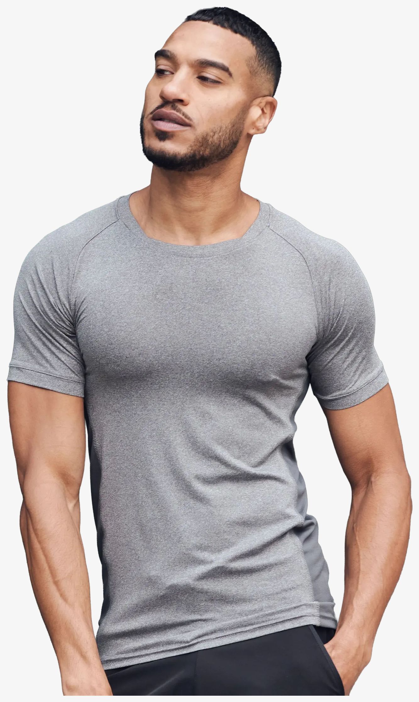 The slim fit men's sport tee-shirt is designed for a close fit with raglan sleeves that facilitate movement. The composition ensures elasticity and breathability.