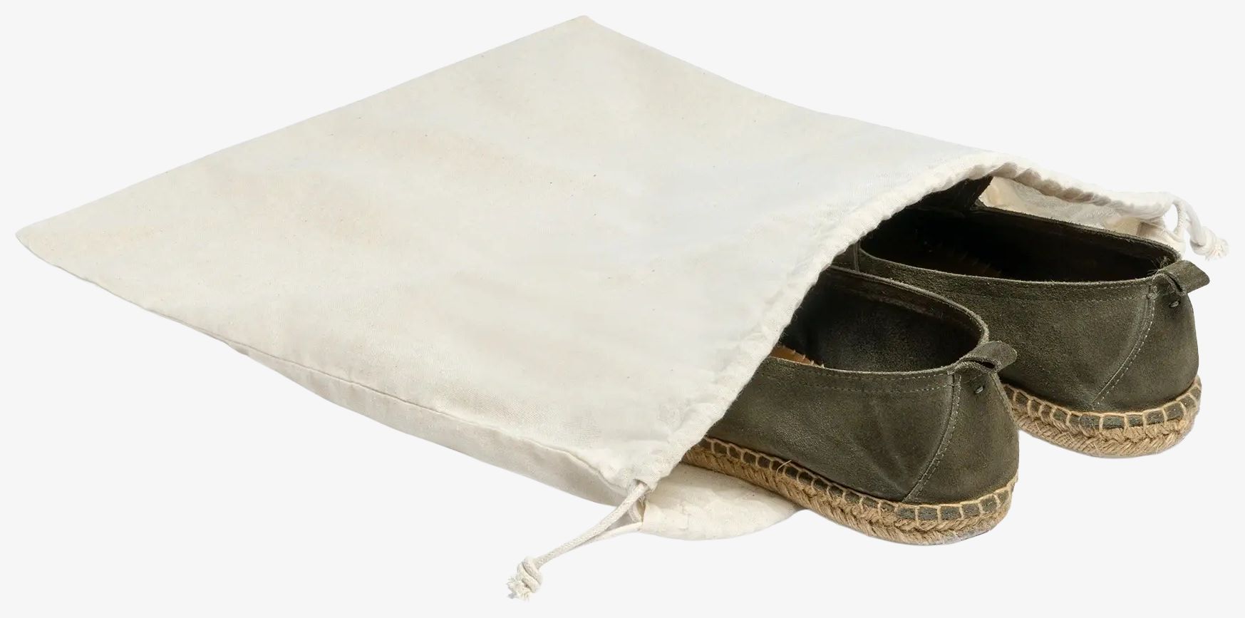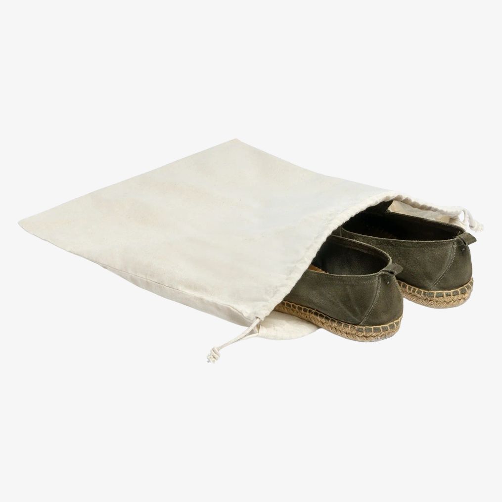 The ZAPAX drawstring pouch is made of cotton for shoe storage. Its dimensions are suitable for this use.