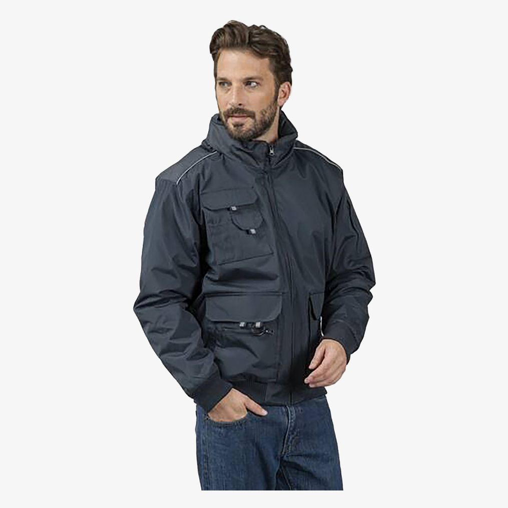 La chaqueta de trabajo STEEL pk542 es adecuada para usos que requieren múltiples espacios de almacenamiento, con 12 bolsillos exteriores y 1 bolsillo interior. Bandas reflectantes en los bolsillos y los hombros. Capucha en el cuello ajustable con tope, cierre de cremallera, puños de canalé.\