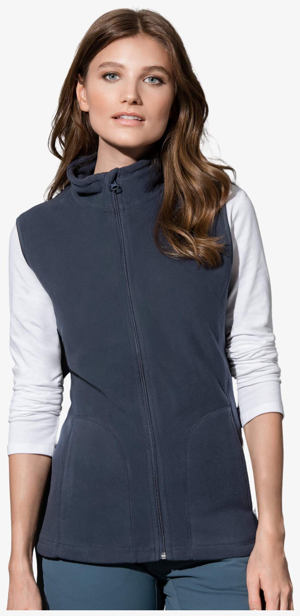 El bodywarmer micropolar cálido ofrece aislamiento térmico con un peso limitado. El material es suave y cepillado por ambos lados, con tratamiento anti-pilling. El diseño incluye un cuello alto, dos bolsillos delanteros y sisas con bandas elásticas.