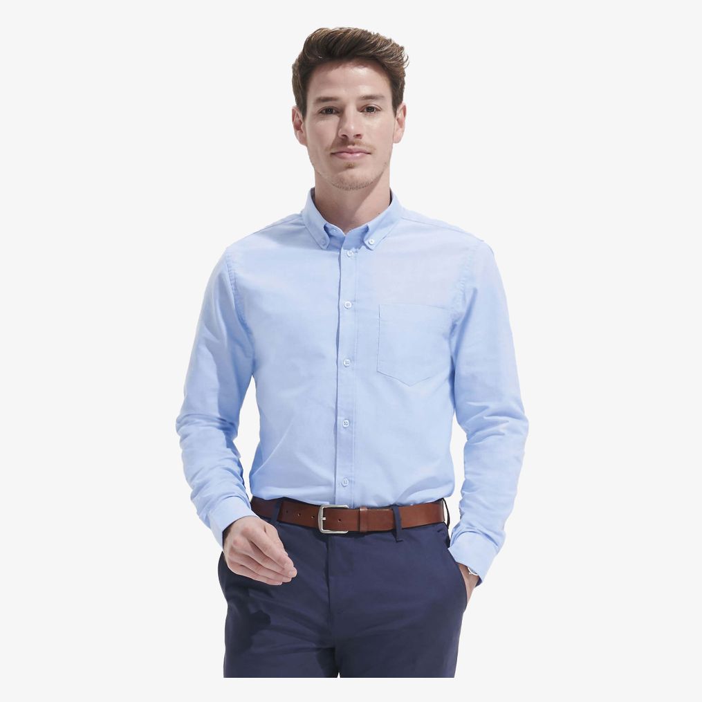 La camisa de hombre oxford Boston Fit está confeccionada con un tejido oxford compuesto por 70% algodón y 30% poliéster. Cuenta con un bolsillo al lado del corazón, cuello abotonado, puños con dos botones ajustables con tapeta capuchón y tapeta con 7 botones tono sobre tono.
