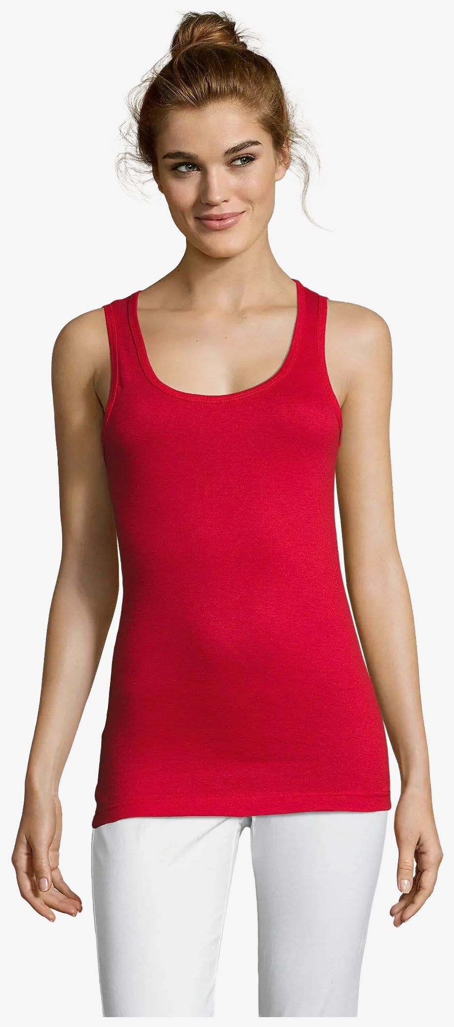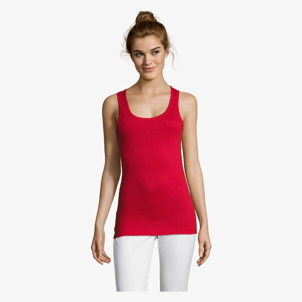 La camiseta de tirantes Jane 11475 es una camiseta de tirantes de mujer de algodón semi-peinado, en punto jersey, con ribete de canalé. Corte cosido para un ajuste regular en el día a día.