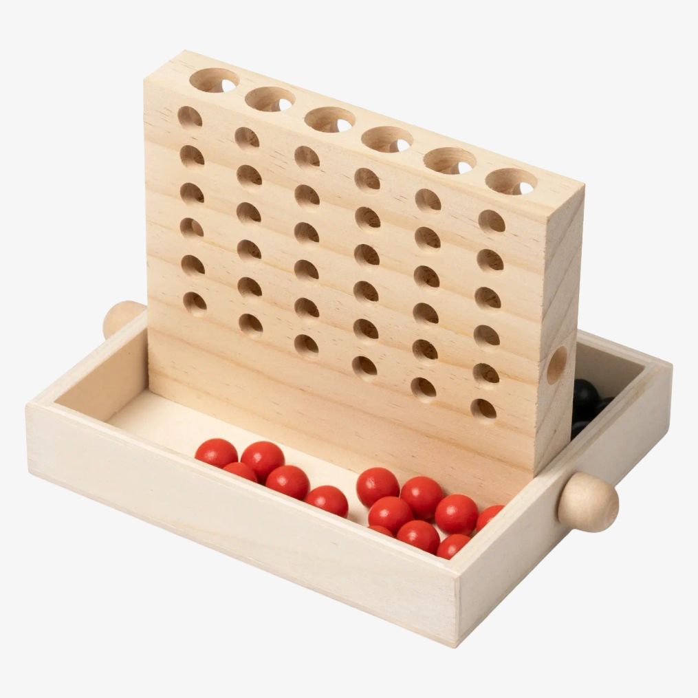 El juego Conecta 4 de madera presenta un diseño natural y robusto. Fácil de montar y desmontar, es apto para diferentes contextos de juego en interior o exterior.