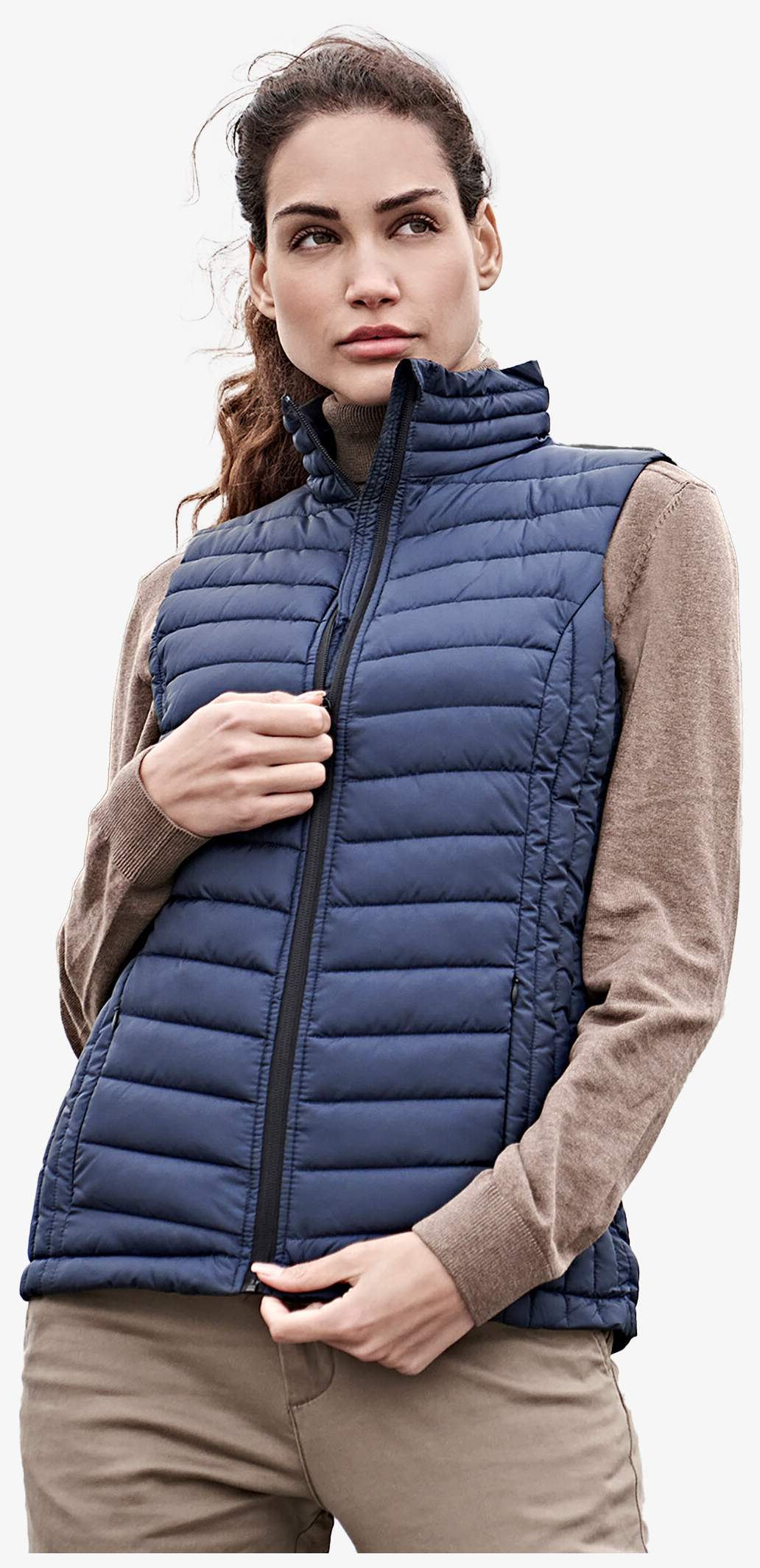 La chaqueta Zepelin es un chaleco acolchado de poliéster diseñado para resistir al viento y repelente al agua. Cuenta con cierre de cremallera de longitud completa con solapa cortaviento, así como bolsillos laterales con cremallera y un bolsillo interior. El corte es ajustado con acceso interno que facilita la decoración.