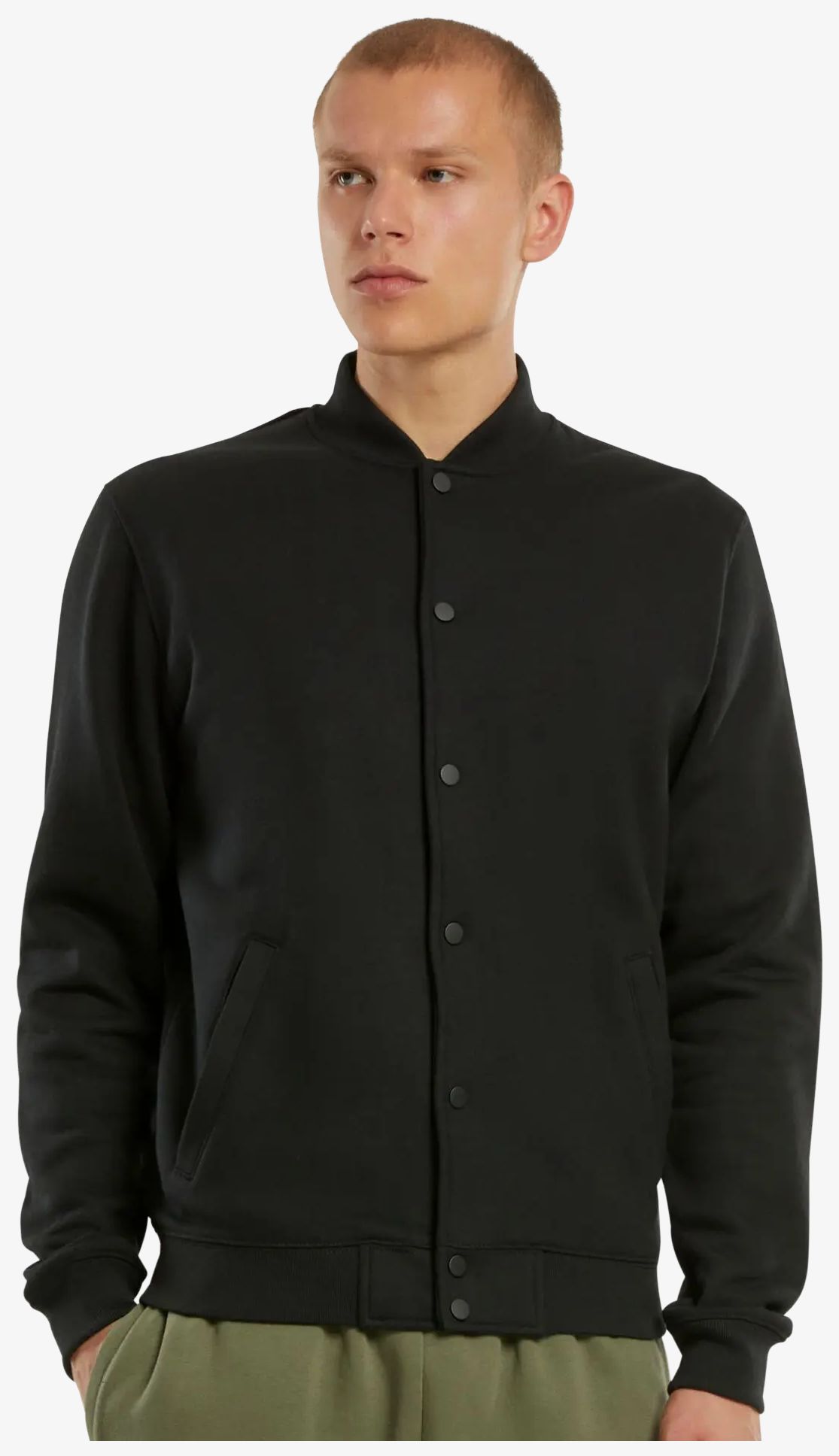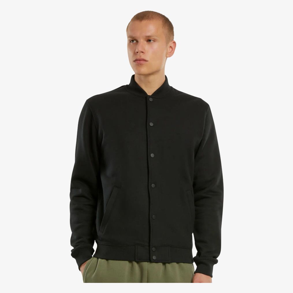 La chaqueta universitaria nm021 presenta un corte deportivo con puños y dobladillo de canalé así como una tapeta de cierre con botones de presión. Su cuello, puños y bajo son de canalé. El interior está cepillado. Está fabricada con materiales procedentes de agricultura ecológica y reciclados.