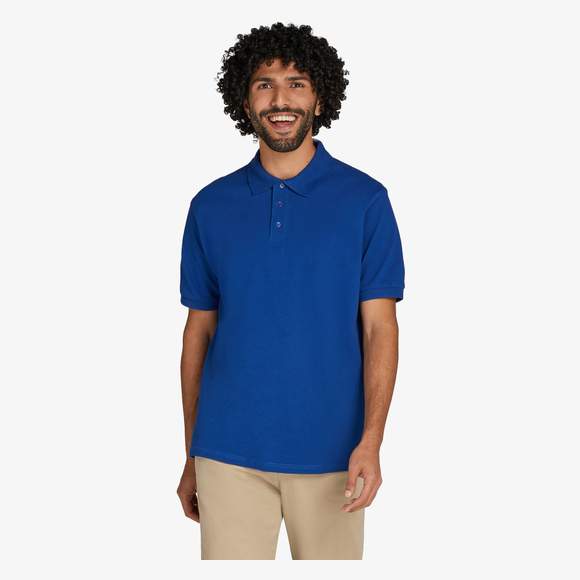 El polo de algodón piqué estilo clásico con aberturas laterales incluye un puño de canalé en el cuello y las mangas que ayuda a mantener la forma. La tapeta tiene tres botones del mismo tono. Una cinta de refuerzo está hecha del mismo material.