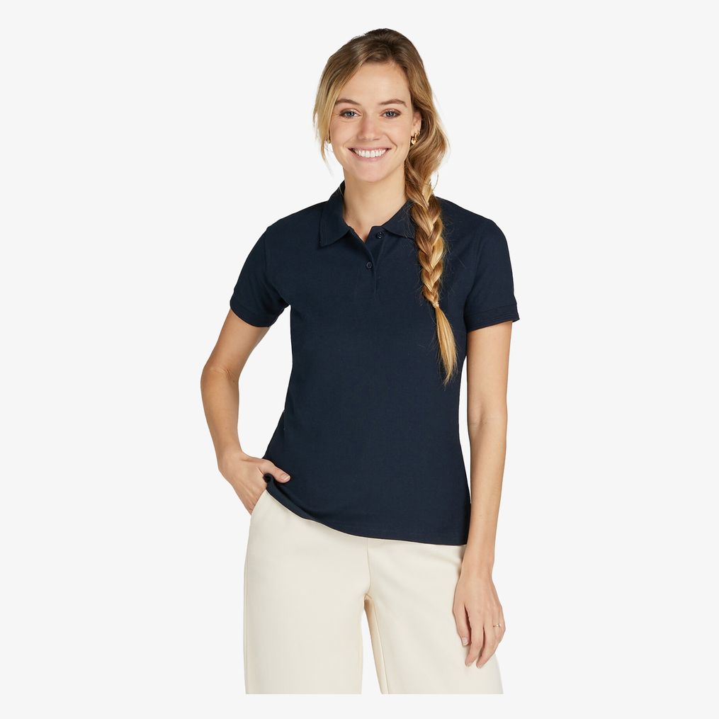 El polo de policotón para mujer asocia algodón y poliéster para un mantenimiento facilitado y un soporte asegurado. Cuenta con una tapeta de abotonadura de 2 botones con botón de reserva y aberturas laterales.