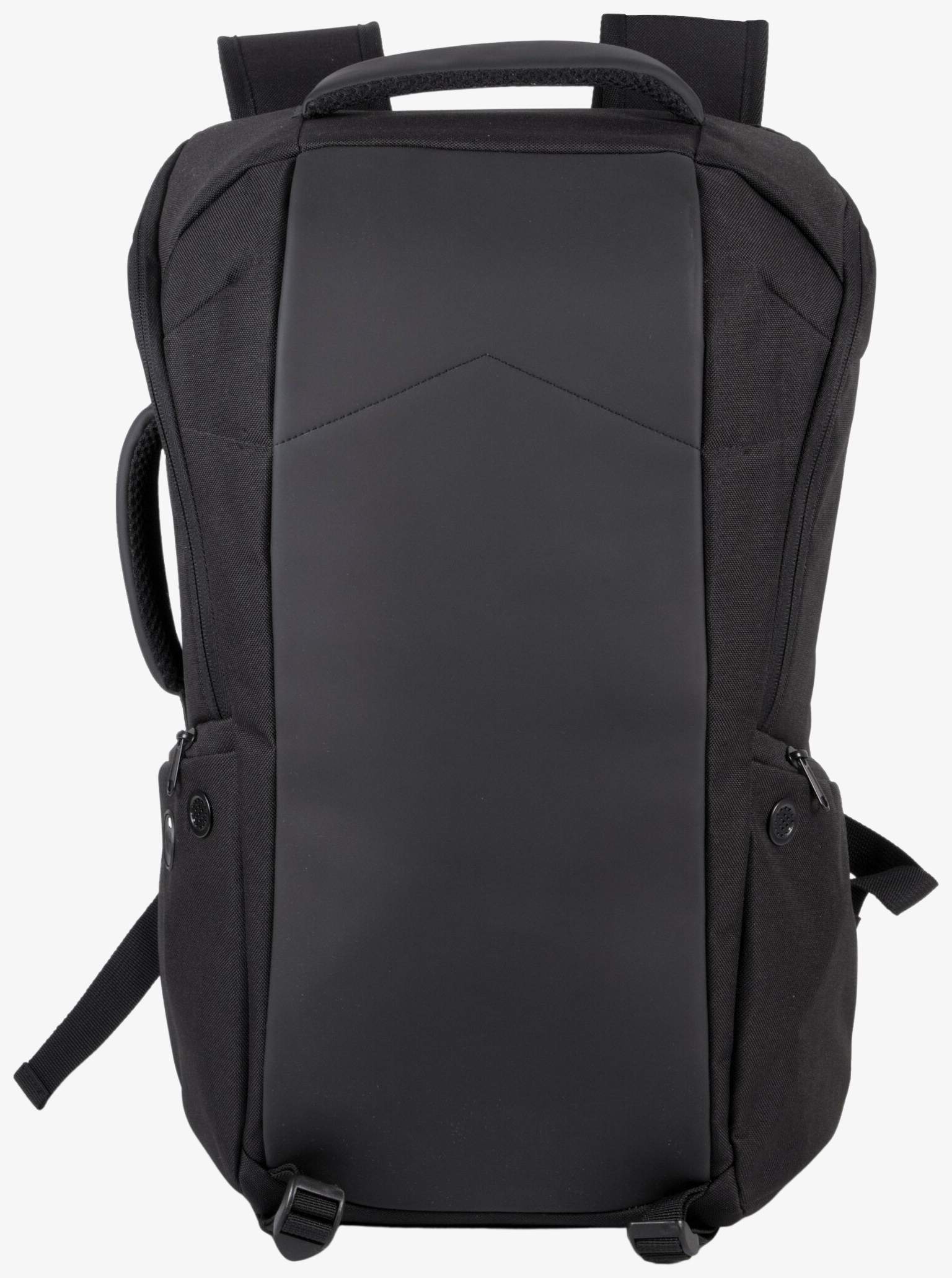 El sac à dos antivol está fabricado en poliéster 600D con panel frontal anti-corte y cierre con cremallera en la parte trasera equipado con sistema de bloqueo TSA. Cuenta con un bolsillo trasero con acceso rápido y cremallera, tirantes con correa de pecho ajustable, dos bolsillos con cremallera en los tirantes, así como dos correas debajo de la mochila para sujetar chaquetas u otros objetos. También dispone de varios bolsillos laterales, uno con puerto USB y micro USB para carga, además de uno con cable anti-robo en espiral para asegurar la mochila.