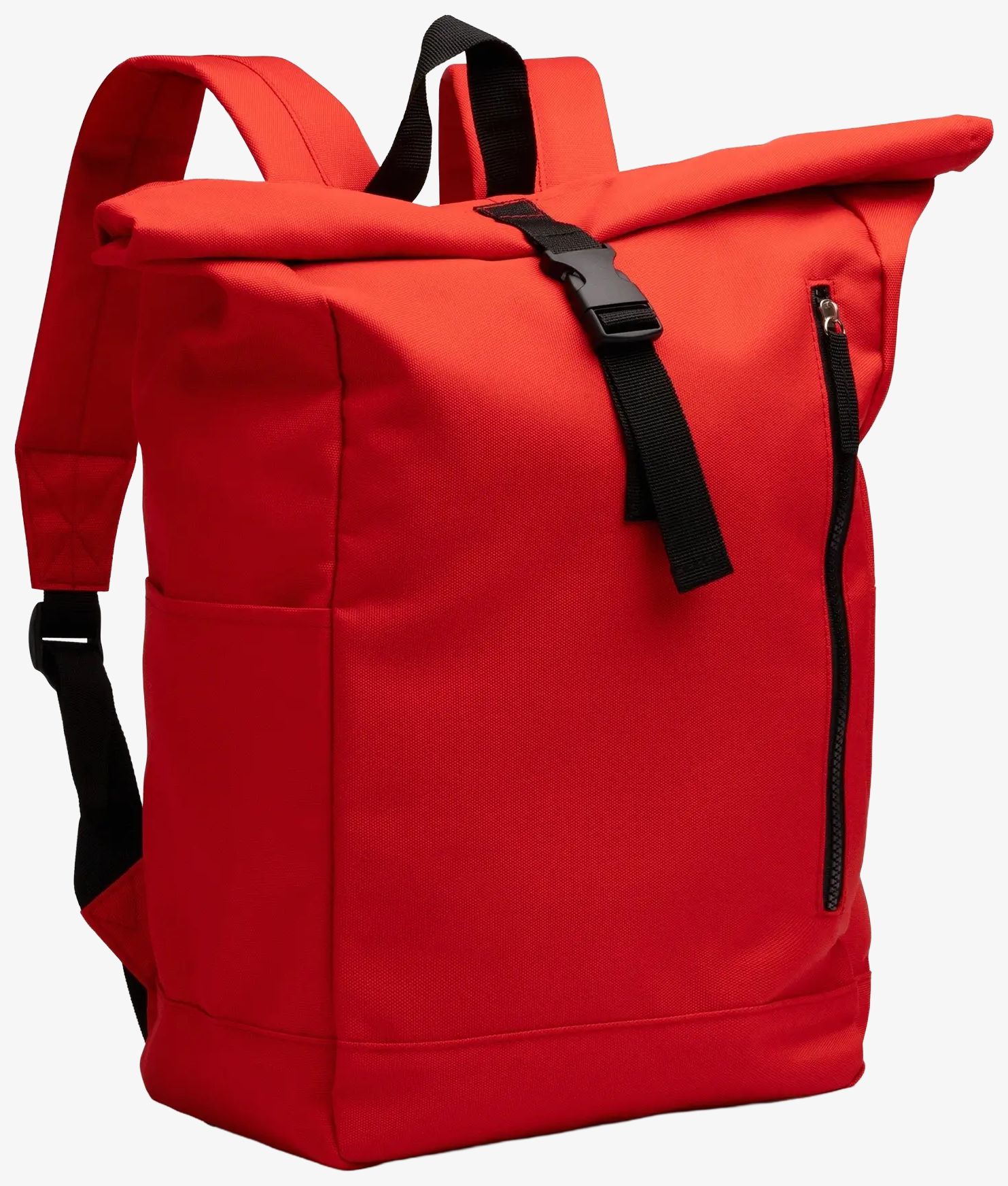 La mochila DRONTE está fabricada en poliéster RPET reciclado. Incluye un compartimento principal espacioso con apertura extensible, un bolsillo exterior con cremallera y dos bolsillos laterales. Las correas están acolchadas para un transporte más cómodo.