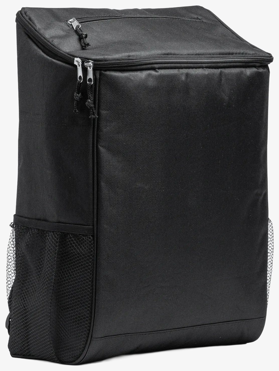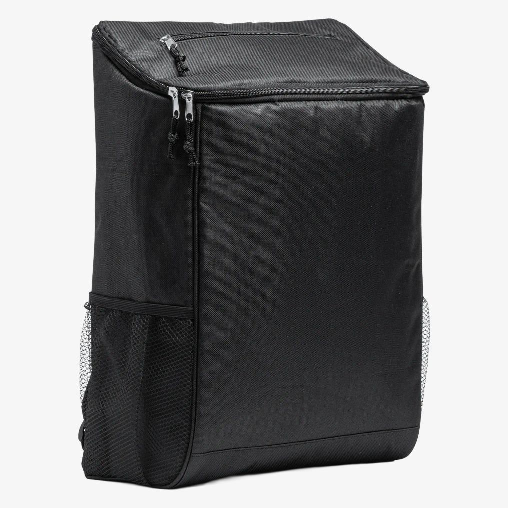 La mochila isotérmica RPET incluye un forro isotérmico en el compartimento principal y un bolsillo en la solapa. Dos bolsillos laterales de malla y respaldo con tirantes acolchados completan su estructura. Su capacidad es de 18 L.