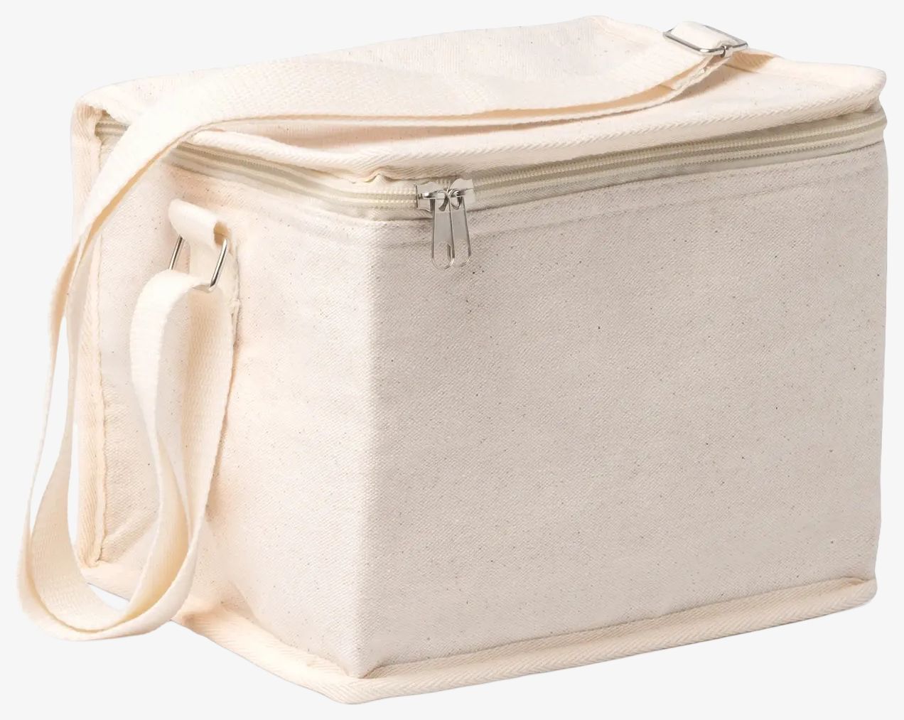 La bolsa isotérmica de algodón TOVAR incluye un bolsillo principal forrado isotérmico y un bolsillo frontal. Está equipada con un asa para transporte.