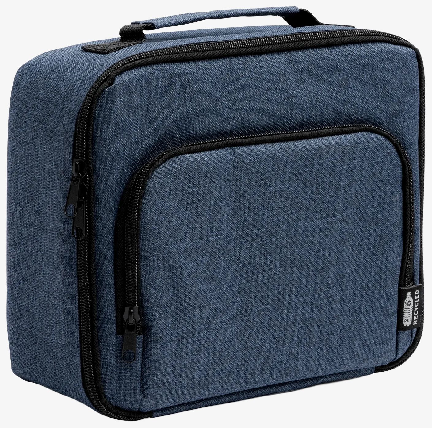 La bolsa isotérmica de poliéster reciclado RPET 600 D presenta un diseño jaspeado y dispone de un bolsillo exterior para guardar objetos pequeños. El interior está equipado con un revestimiento isotérmico destinado a mantener la temperatura de alimentos y bebidas. Un asa facilita su transporte.