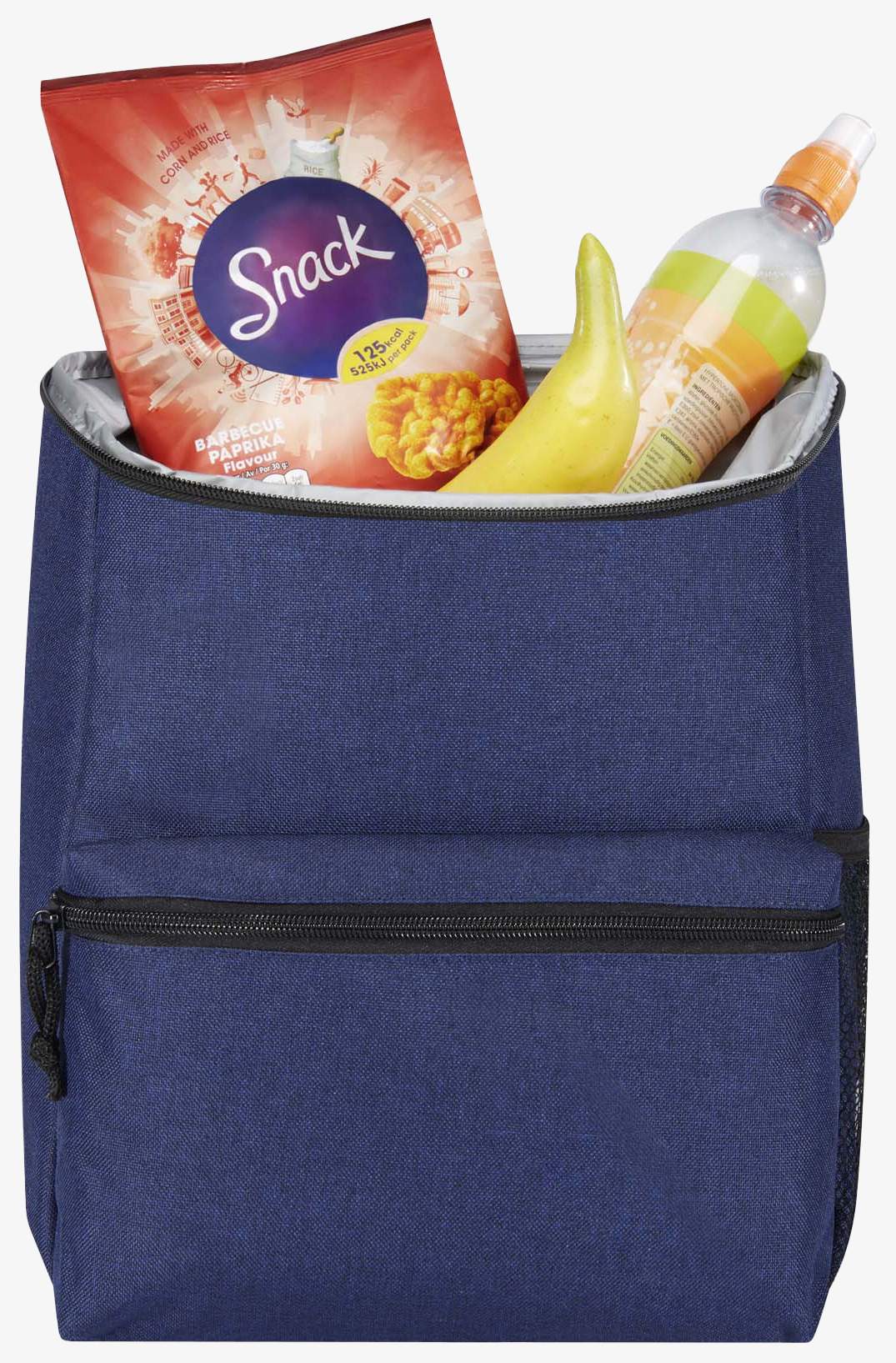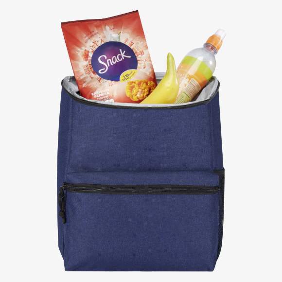 La mochila isotérmica Excursion cuenta con un gran compartimento principal con cremallera forrado de PEVA, adecuado para conservar la temperatura del contenido durante actividades al aire libre. Posee un bolsillo lateral de malla para botella y un bolsillo delantero con cremallera para objetos pequeños. Las correas acolchadas son ajustables para el transporte.