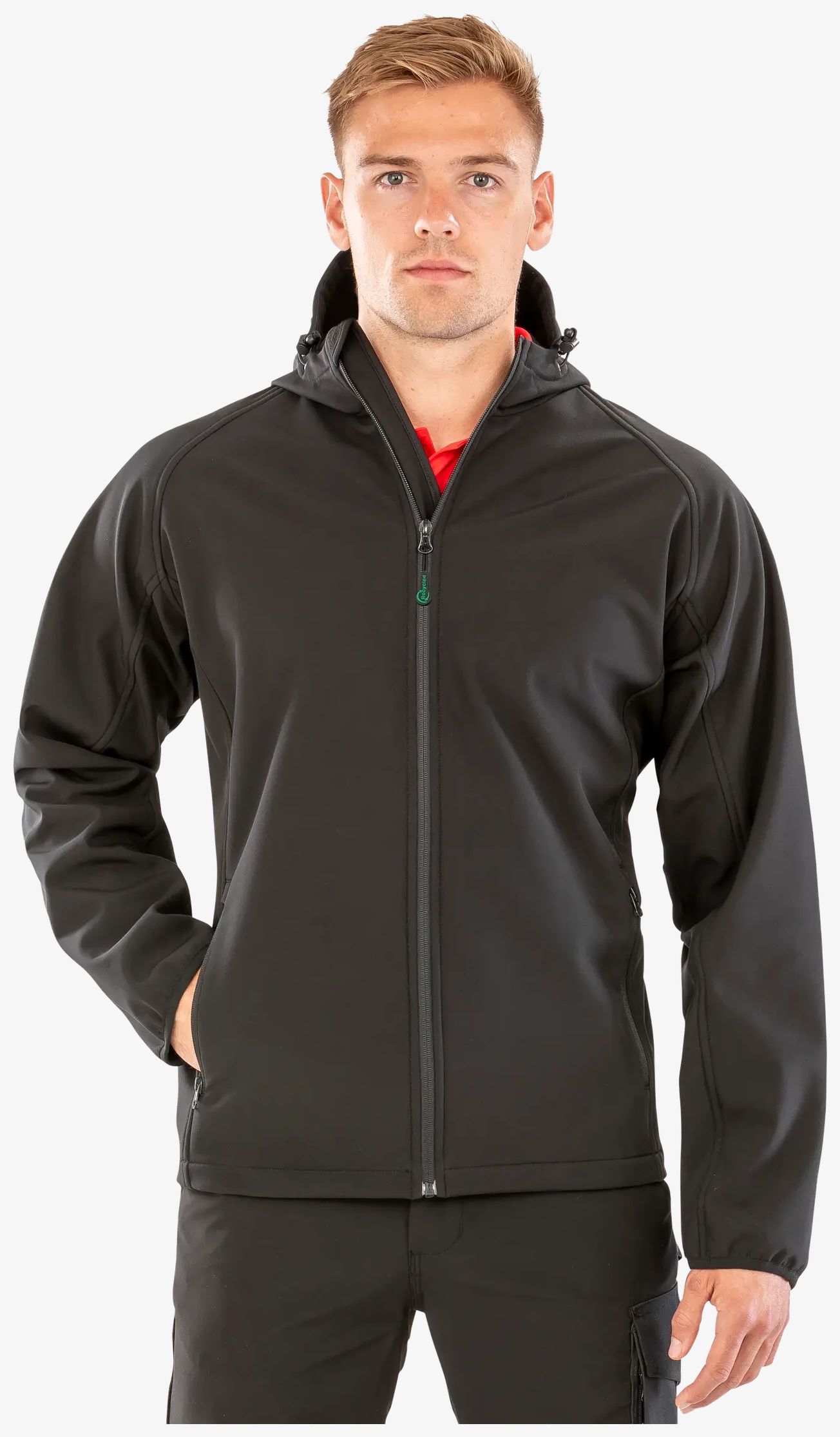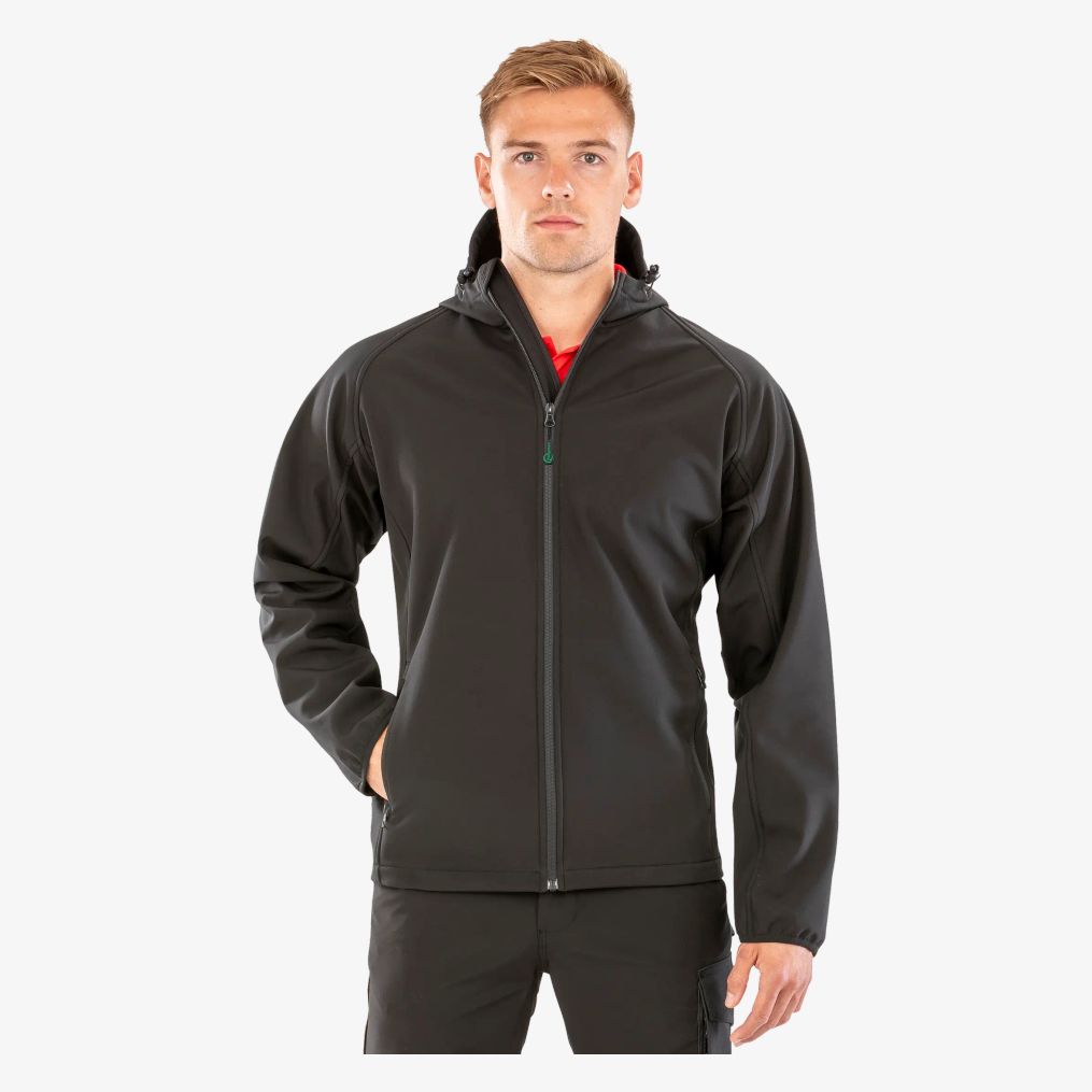 El Softshell con Capucha Reciclada es una chaqueta softshell con capucha con construcción de 3 capas en materiales reciclados. Membrana de TPU reciclada, impermeabilidad 8000 mm, transpirabilidad 3000 y función cortaviento. Interior de micropolar, puños elásticos, capucha ajustable y bolsillos laterales con cremallera, con bolsillos interiores.