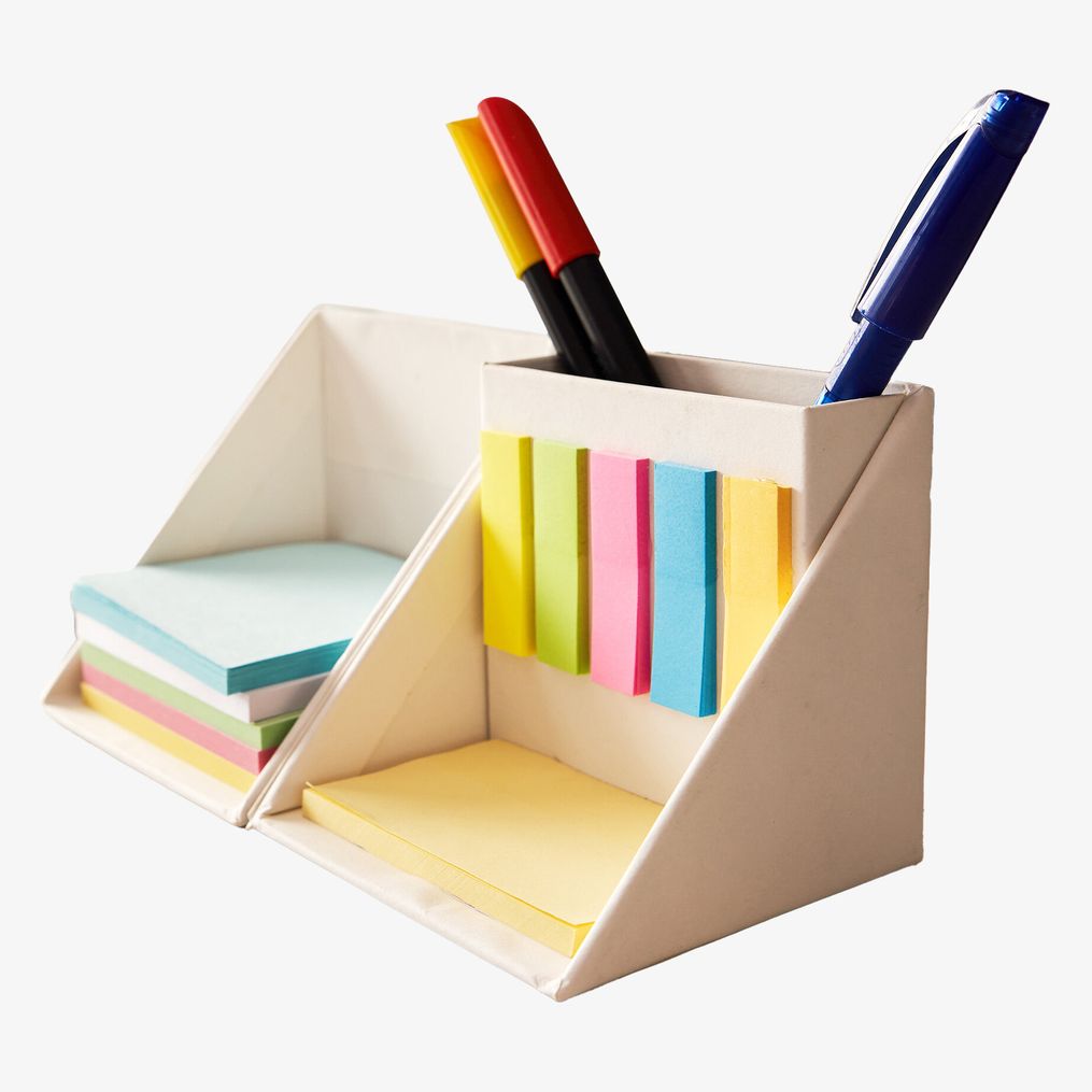 El conjunto de oficina forma cubo incluye un lápiz, un bloc de notas de 250 hojas y 180 notas adhesivas de diferentes colores. Este conjunto reúne los elementos necesarios para uso en oficina o en casa.