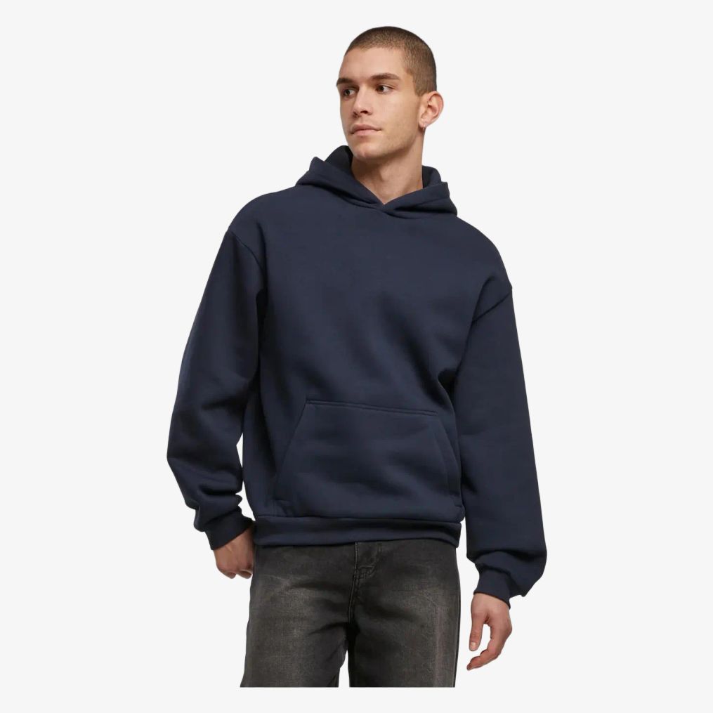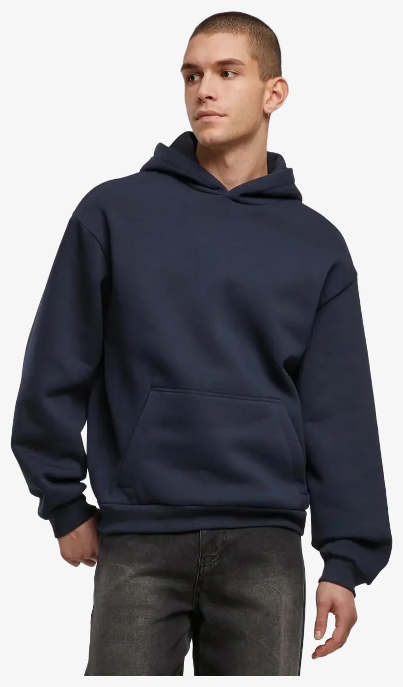 La sudadera con capucha oversize nm011 está diseñada con un corte holgado y hombros caídos. Presenta un interior afelpado y una capucha sin cordón. La fabricación utiliza materiales de agricultura orgánica y reciclados.