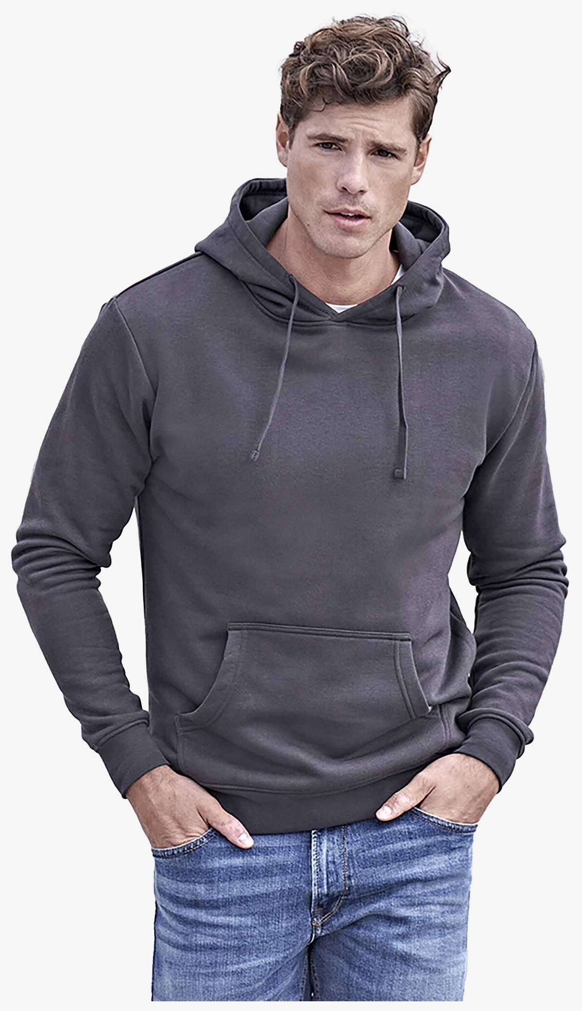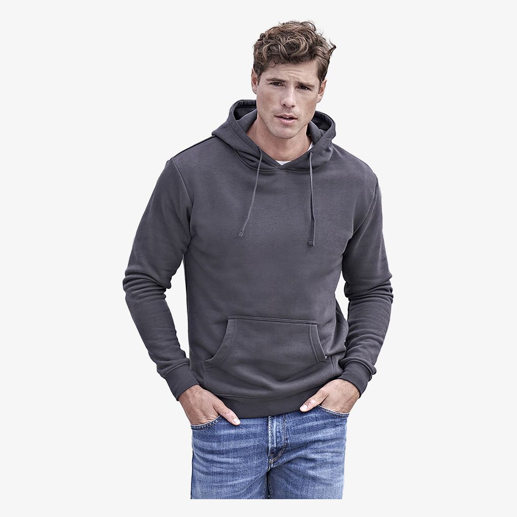 La sudadera con capucha combina algodón orgánico y poliéster. Cuenta con capucha, bolsillo canguro y mangas rectas. La superficie es lisa y suave con interior cepillado para mayor comodidad. Los puños son elásticos y la etiqueta es desmontable.