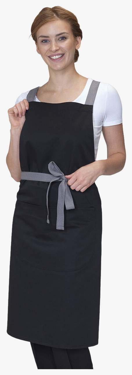 El delantal Crossback Apron está confeccionado en poliéster y algodón. Mide 71 cm por 91 cm e incluye un lazo contrastante gris.