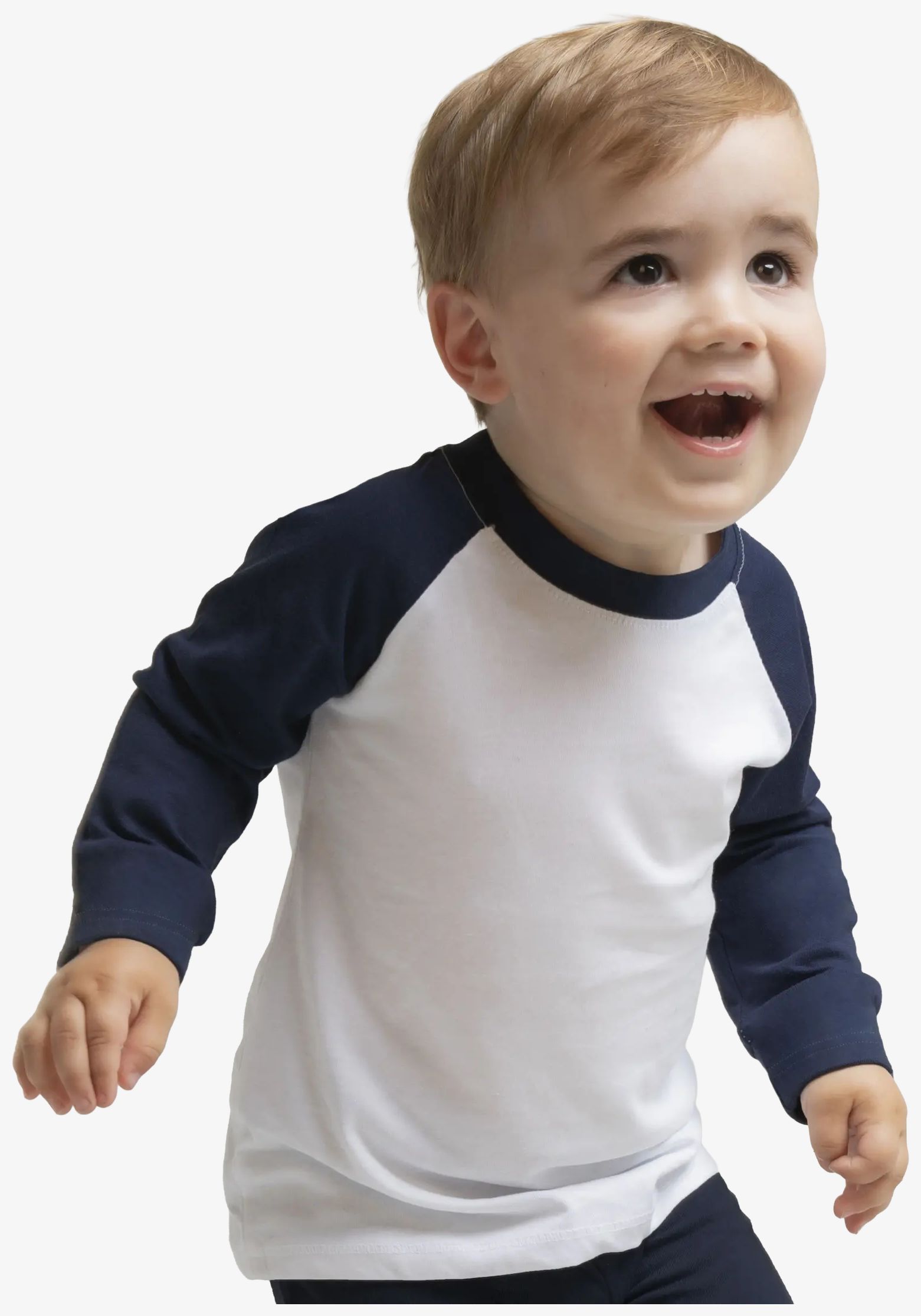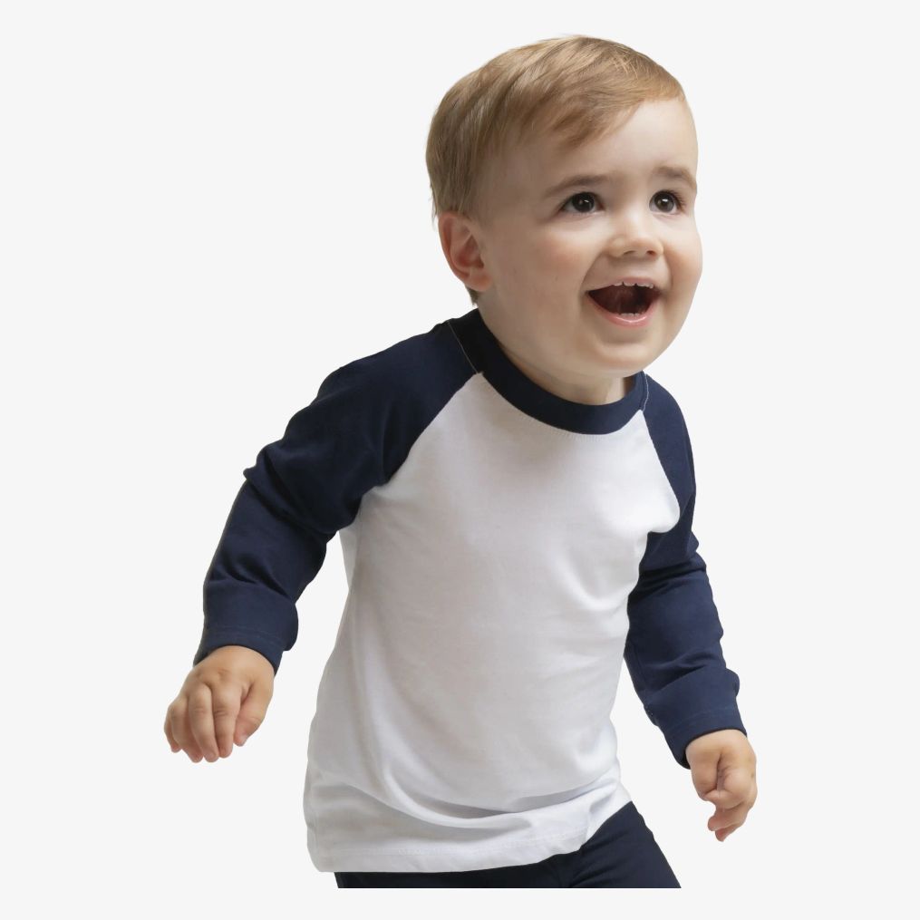 El Baseball tee-shirt es un tee-shirt para bebé de manga larga raglán, adecuado para un uso diario. El cuello y las mangas en contraste estructuran el corte, mientras que los acabados en los puños y el dobladillo completan el conjunto.