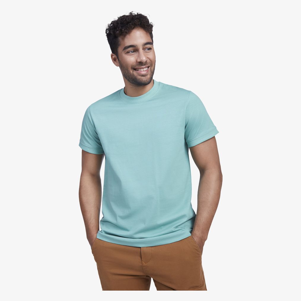 La tee-shirt Veza está confeccionada en algodón grueso con mangas cortas y escote redondo en canalé 2x1. Presenta costuras reforzadas cubiertas en el cuello y costuras laterales. El dobladillo ancho tiene una costura ancha y se integra una etiqueta desprendible.