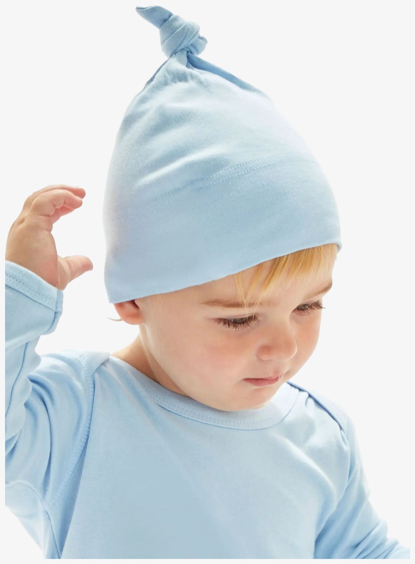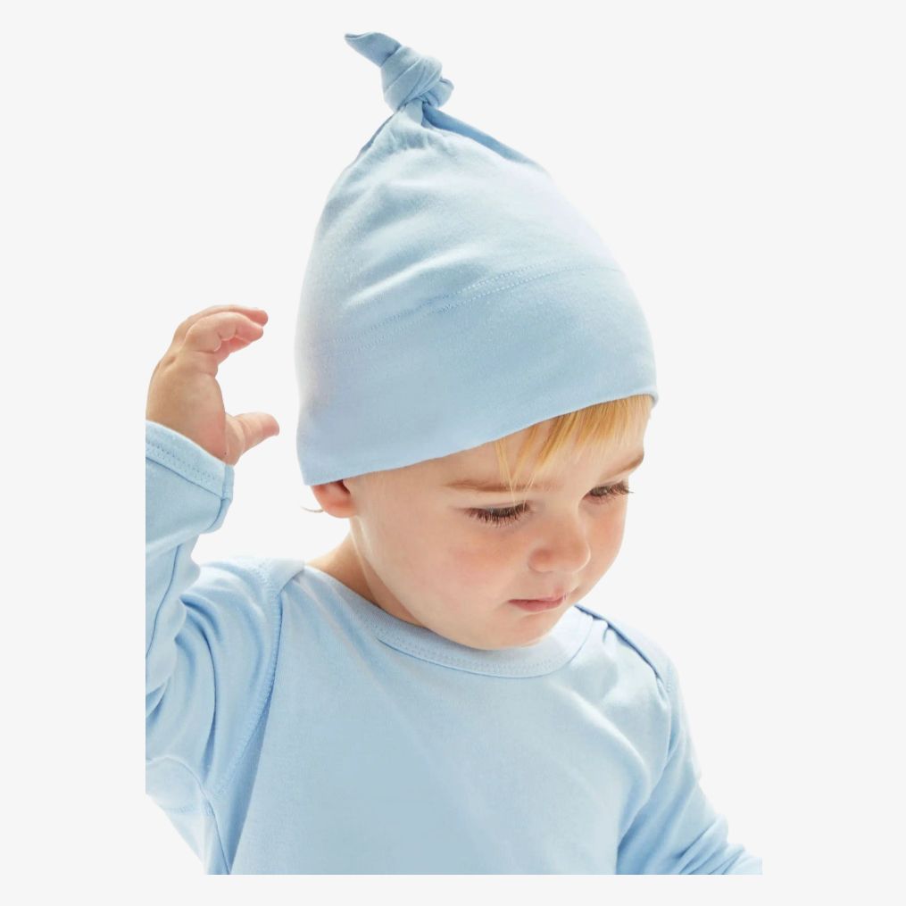 Il Baby 1 Knot Hat è un cappellino per neonato in cotone pettinato interlock, con ampio risvolto e impunture, completato da un nodo decorativo sulla sommità per l’uso quotidiano.