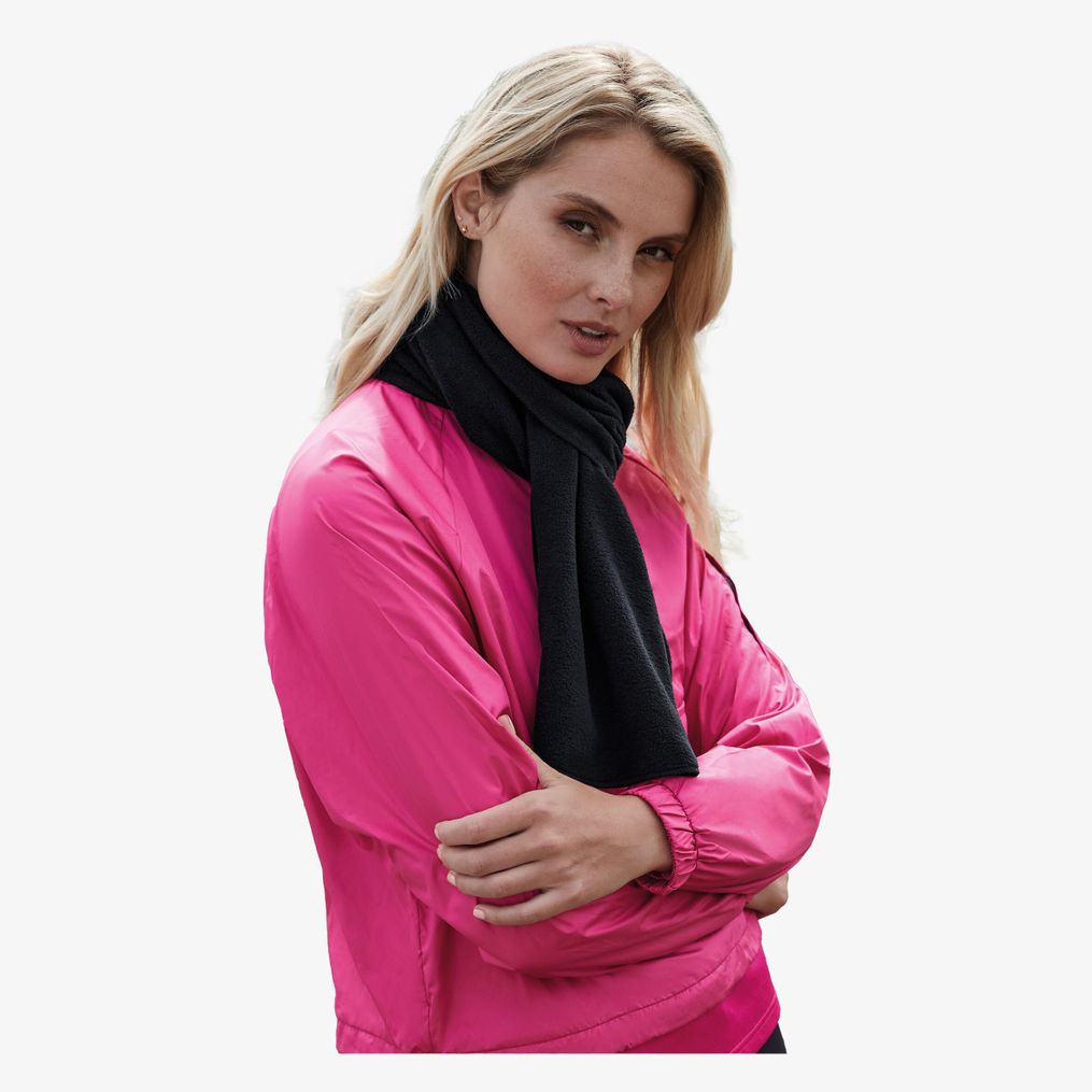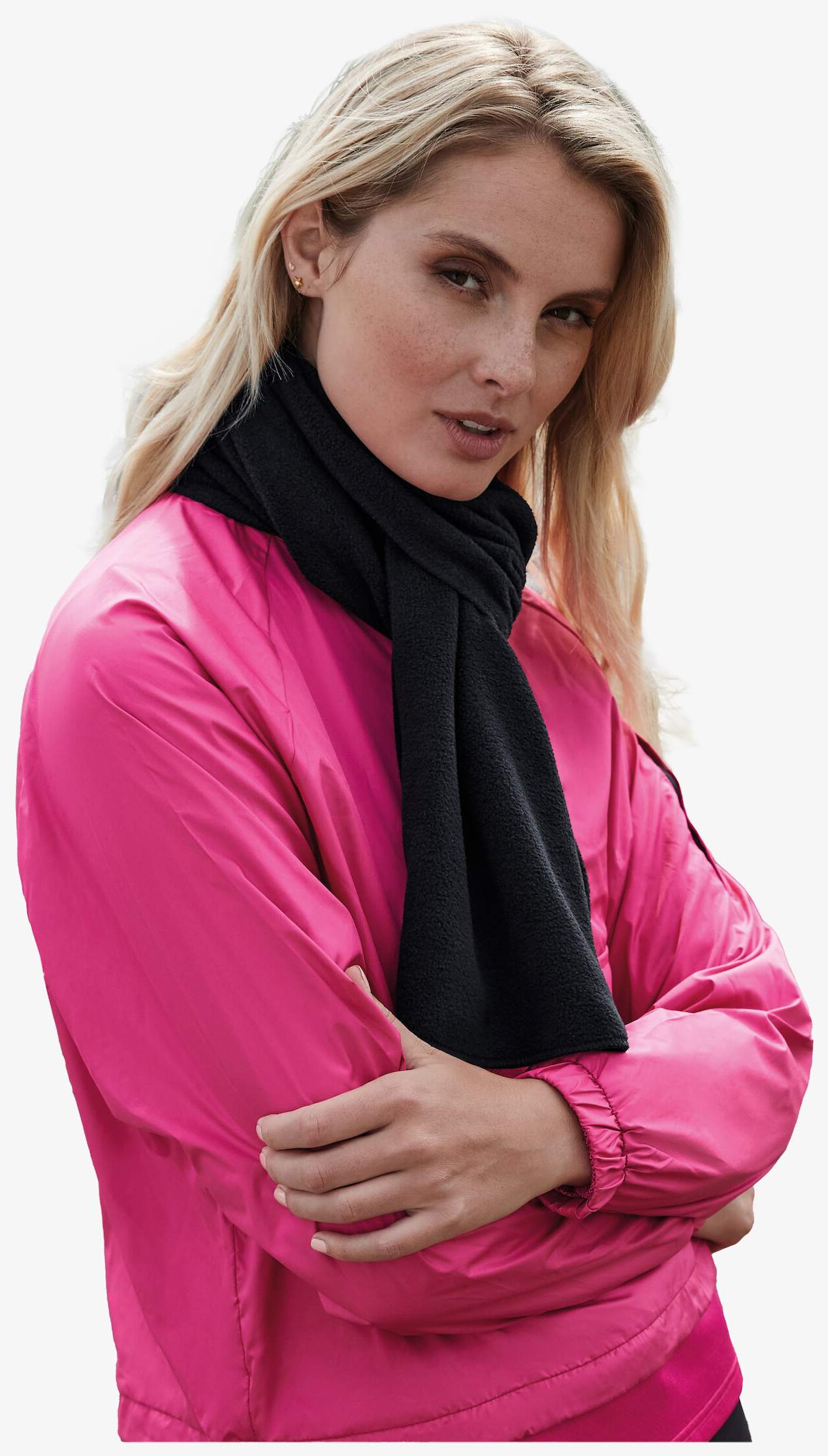 La sciarpa in pile riciclato è realizzata in tessuto termico spazzolato su entrambi i lati con finitura antipilling. I bordi sono accuratamente cuciti per garantire una tenuta uniforme. Viene fornita con un'etichetta adesiva rimovibile in tessuto.