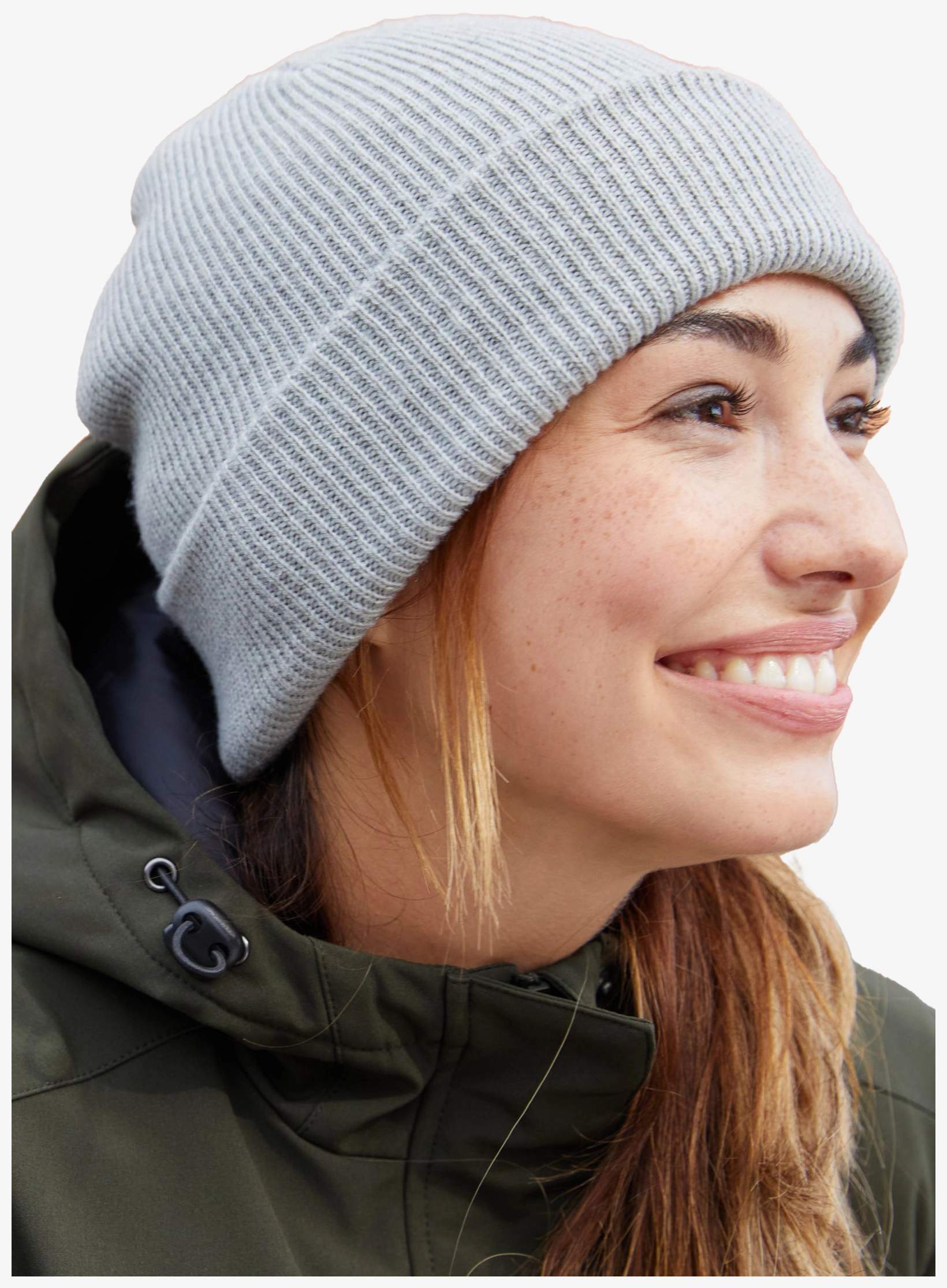 Il cappello in poliestere riciclato presenta un taglio classico con doppio strato che assicura una sensazione morbida al tatto. La sua struttura offre un utilizzo adatto alle condizioni invernali.