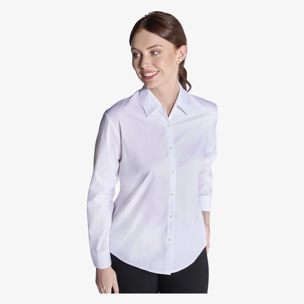 Camicia popeline a maniche lunghe da donna. Vestibilità leggermente aderente. Bottoni tono su tono.