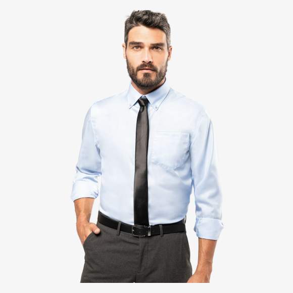 La Chemise manches longues sans repassage in cotone micro twill è adatta all'uso quotidiano. Tessuto non stiro, colletto con bottoni, tasca sul petto e polsini regolabili. Fondo arrotondato.