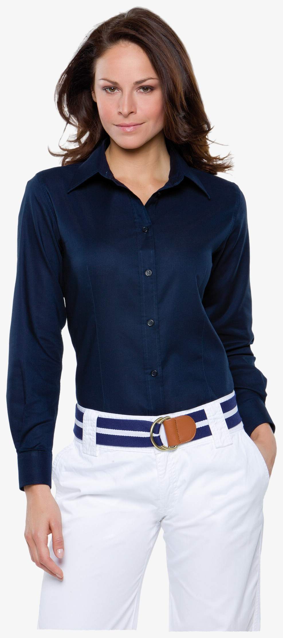 La Promotional Ladies Long Sleeve Oxford Blouse è una camicia a maniche lunghe con colletto classico con bottone, carrè posteriore, pince davanti e dietro per sagomare, polsini regolabili e fondo arrotondato.