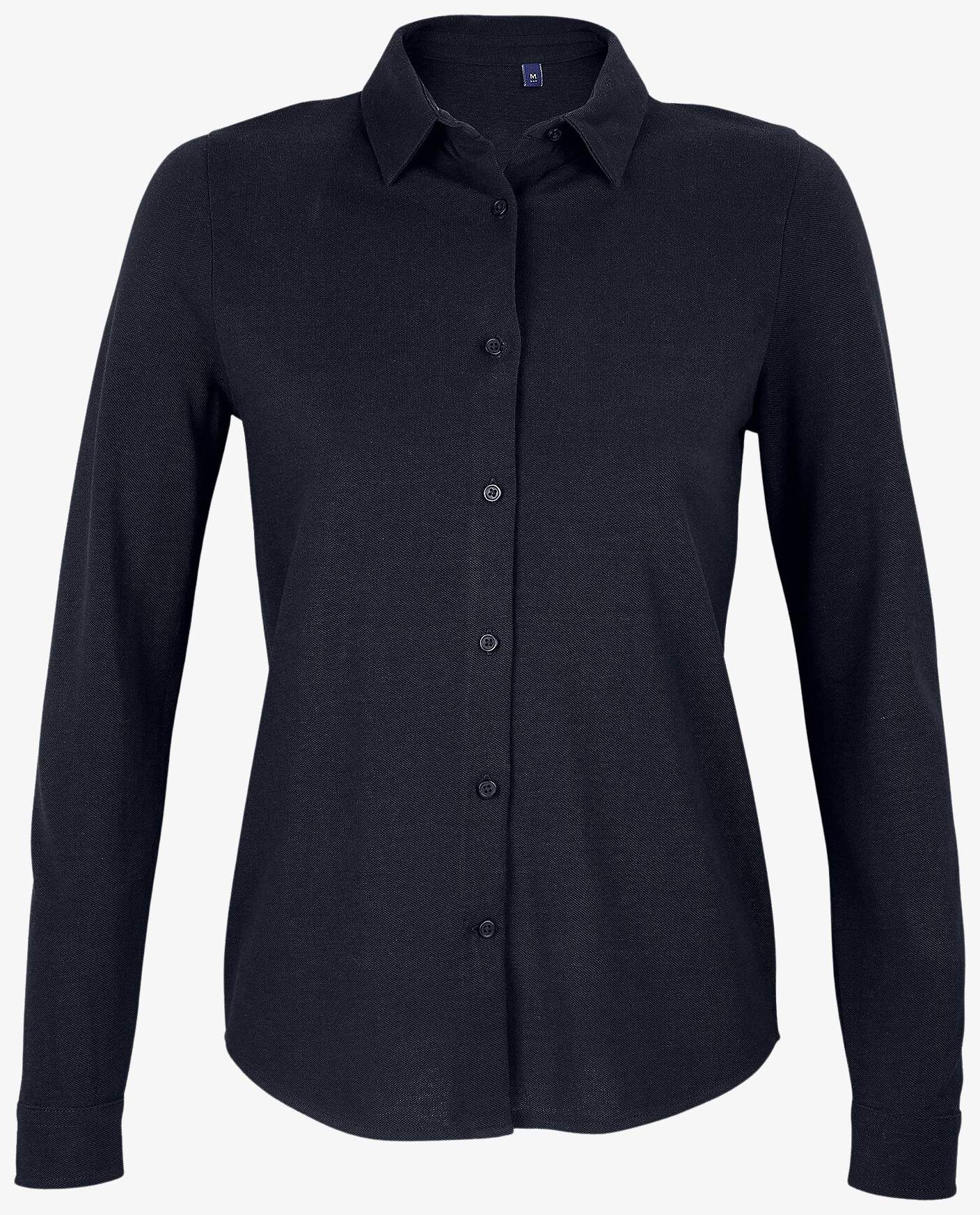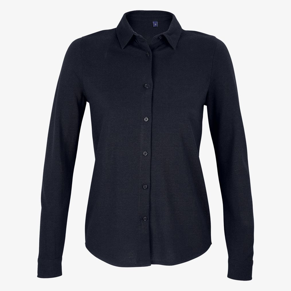 La camicia in cotone piqué da donna ha maniche lunghe, collo classico e polsini arrotondati con 2 bottoni regolabili. La patta presenta 7 bottoni tono su tono.