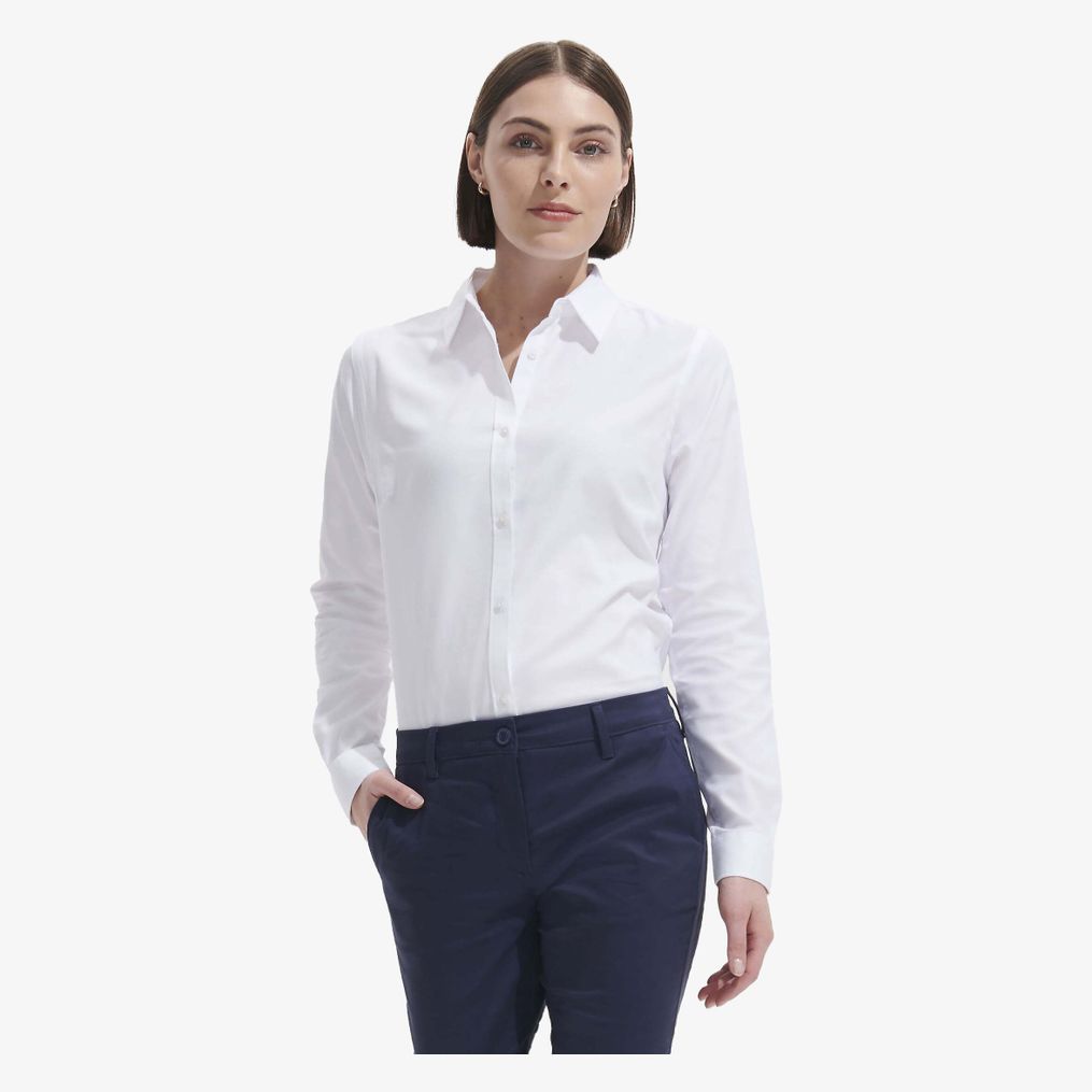 La camicia donna Brody Women \u00e8 realizzata in tessuto a spina di pesce testurizzato con filo tinto. Presenta una vestibilit\u00e0 aderente con pince sul petto e sulla schiena, colletto classico, patta con 7 bottoni, polsini arrotondati con 1 bottone e patta capuccina bottonata.