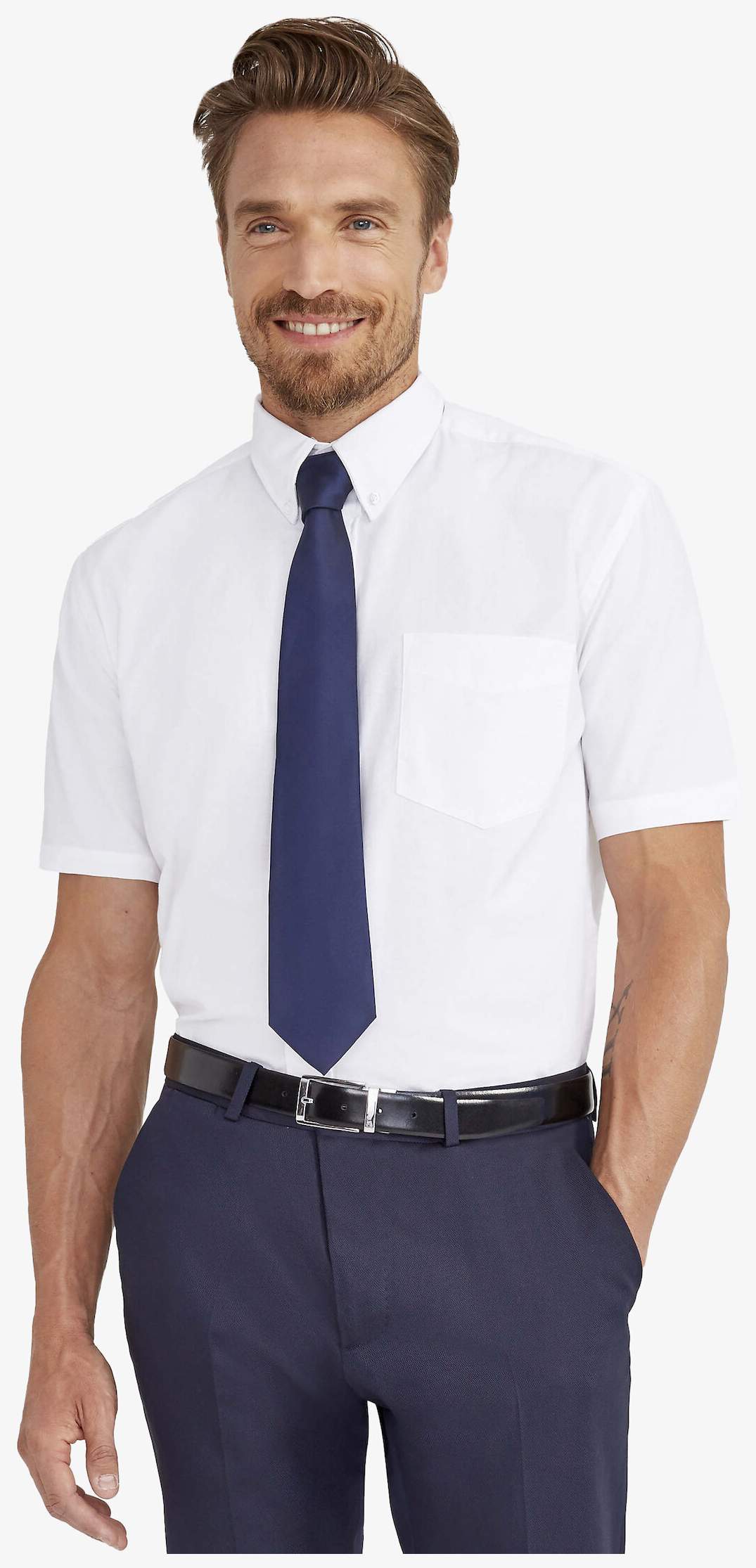 La camicia uomo Oxford Brisbane a maniche corte è adatta all’uso quotidiano e al lavoro, con colletto a 2 bottoni, taschino sul petto e due pieghe sul retro.