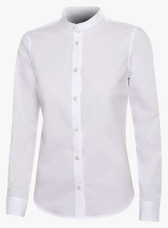 La chemise femme col mao ha una chiusura con bottoni con patta e pince anteriori e posteriori per una vestibilit\u00e0 sagomata. Un inserto sulla schiena e polsini con bottoni completano la sua struttura. Un bottone di ricambio \u00e8 incluso.