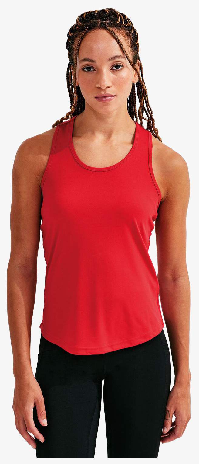 La canotta donna schiena a nuotatore Performance [[Tridri® slim riciclata]] è realizzata in tessuto morbido 100% poliestere riciclato che facilita l'evacuazione del sudore. Presenta uno scollo ampio, una schiena a nuotatore e un orlo arrotondato.
