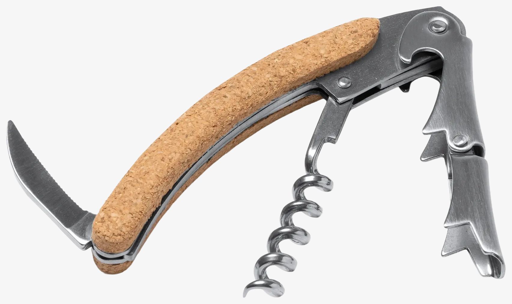 Il cavatappi in acciaio inox con manico in sughero combina durata e presa confortevole grazie al suo design classico e al meccanismo a doppia leva.