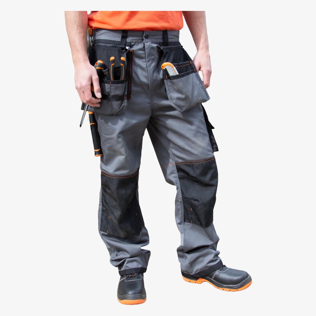 I pantaloni da lavoro Cordura X over hanno 17 tasche, tra cui una tasca frontale rimovibile e una tasca cargo. Inserti in Cordura e cuciture rinforzate completano l’uso in cantiere. Bande riflettenti sul retro delle gambe, patta con zip e passanti per cintura.