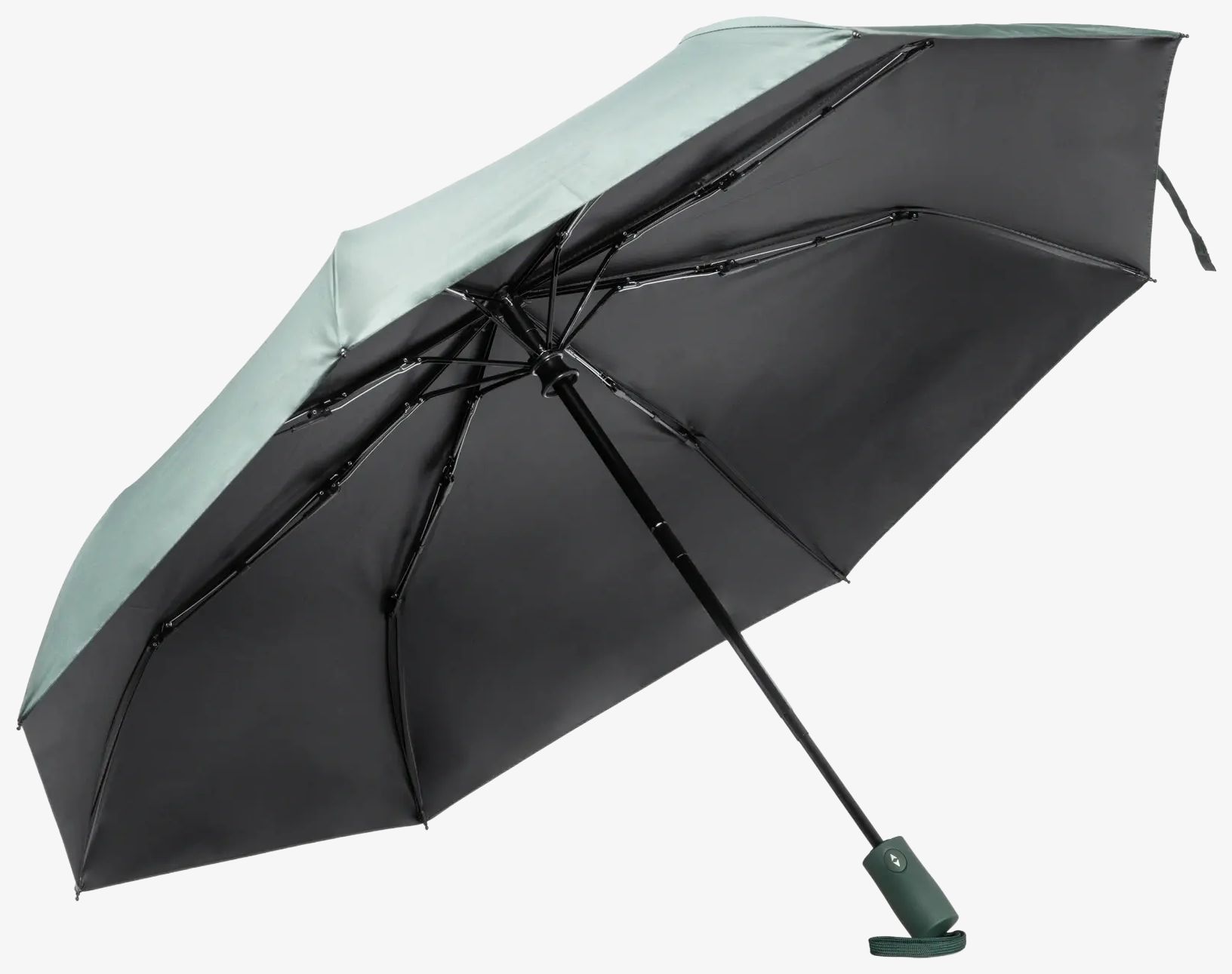 L'ombrello pieghevole RPET è realizzato con tessuto pongee 190 T dotato di protezione UV SPF50. Presenta apertura e chiusura automatica e stecche in fibra di vetro con sistema di protezione contro le bufere.